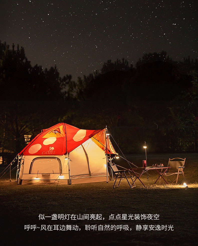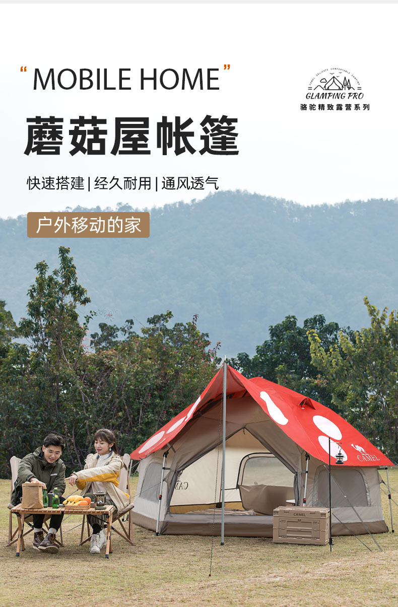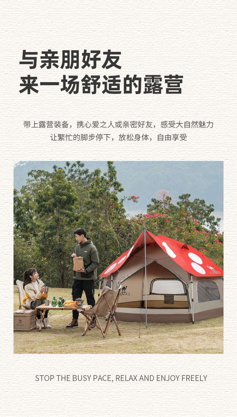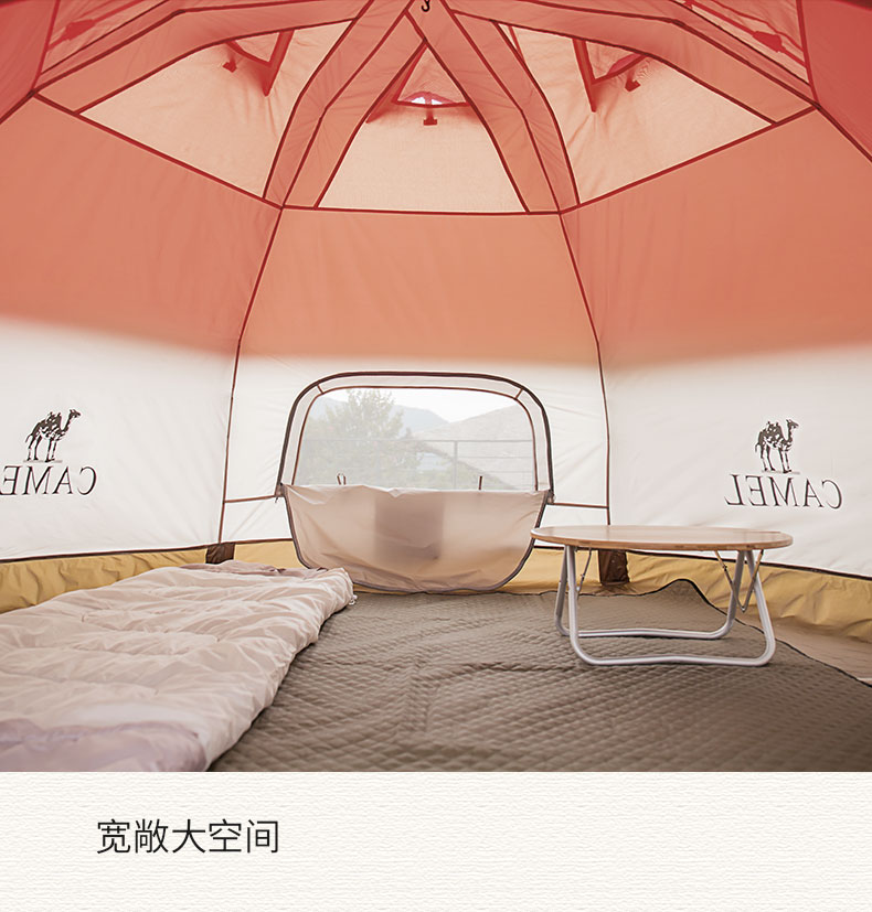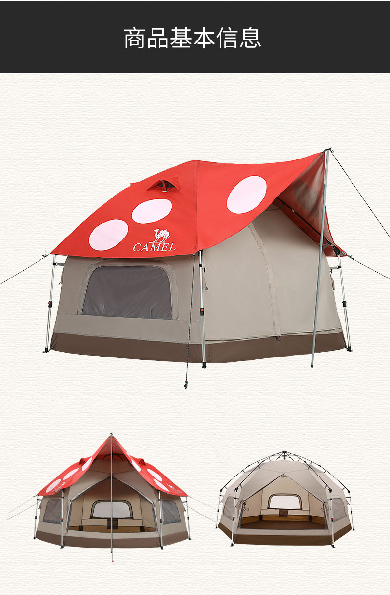 骆驼(CAMEL)户外露营便携折叠加厚3-4人蘑菇屋自动帐篷1J322C7728 红色