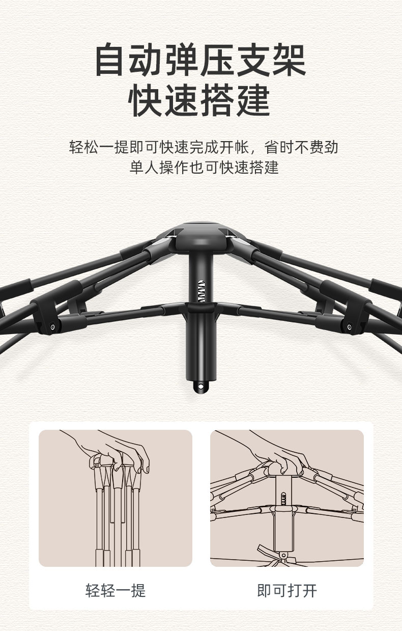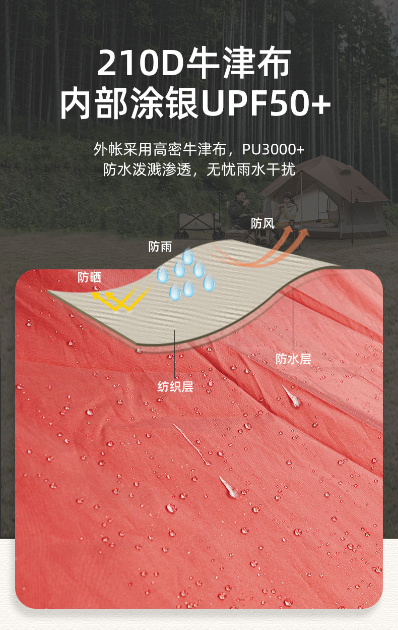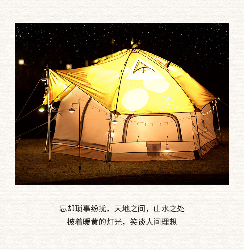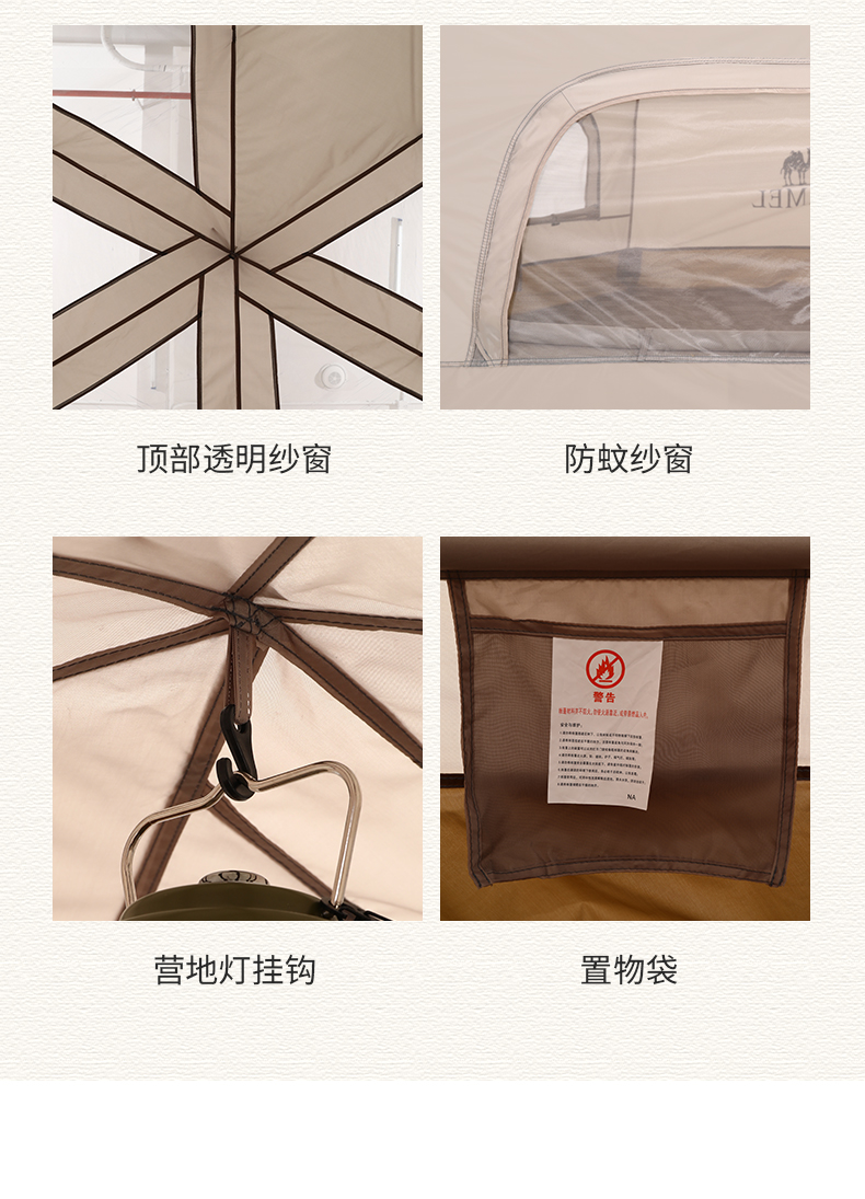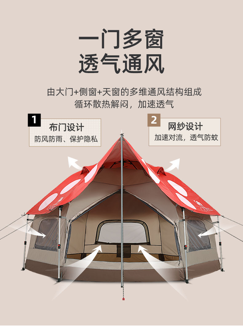 骆驼(CAMEL)户外露营便携折叠加厚3-4人蘑菇屋自动帐篷1J322C7728 红色