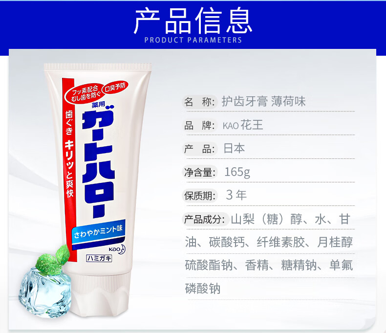 花王防蛀美白牙膏去除口臭牙周炎齿垢165g*5支 本白色