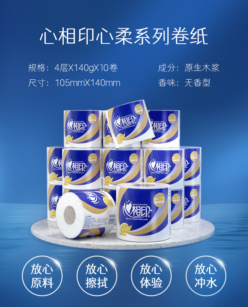 心相印140克10粒装四层卷筒卫生纸BT910(1提装) 蓝色