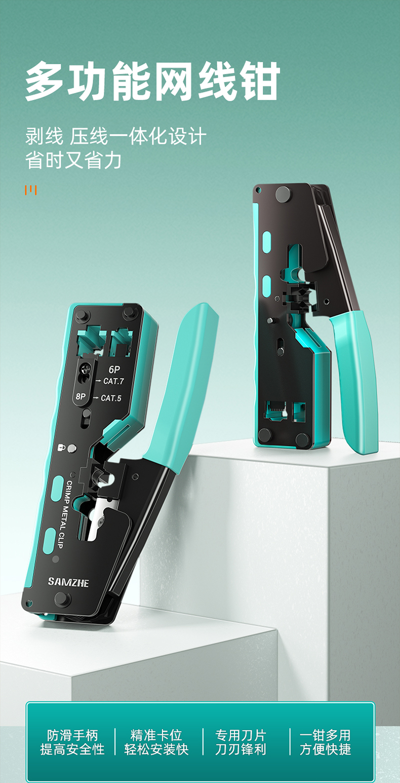 山泽(SAMZHE)七类多功能网线钳网络工具水晶头网线钳压线钳7类RJ45专用带燕尾夹屏蔽压线钳 SZ-789 把 蓝色