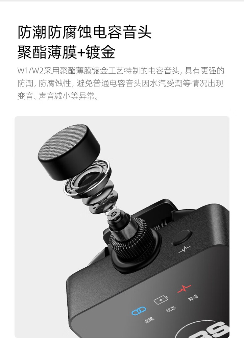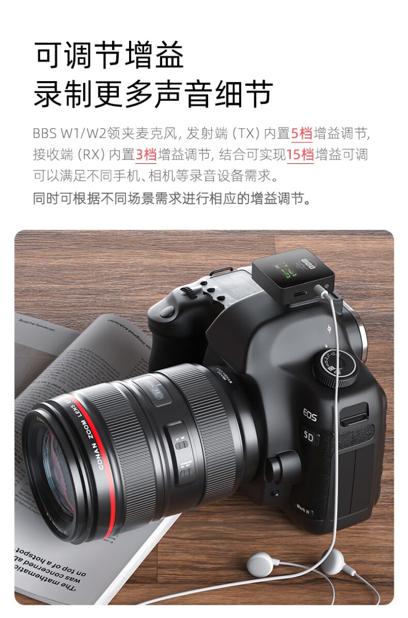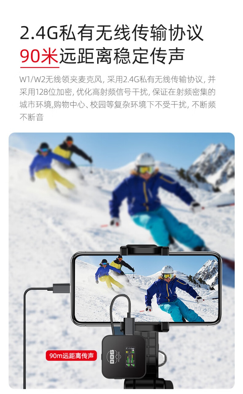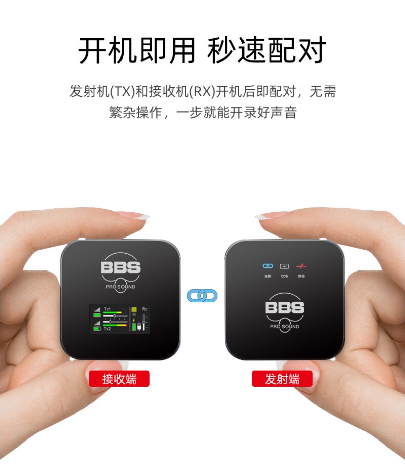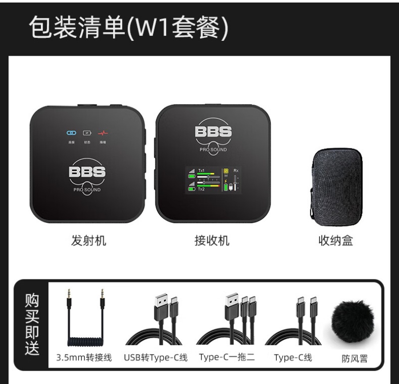 BBS 相机手机小蜜蜂直播、短视频收音话筒 无线领夹麦克风 W1(一拖一) 套 黑色
