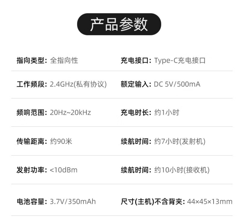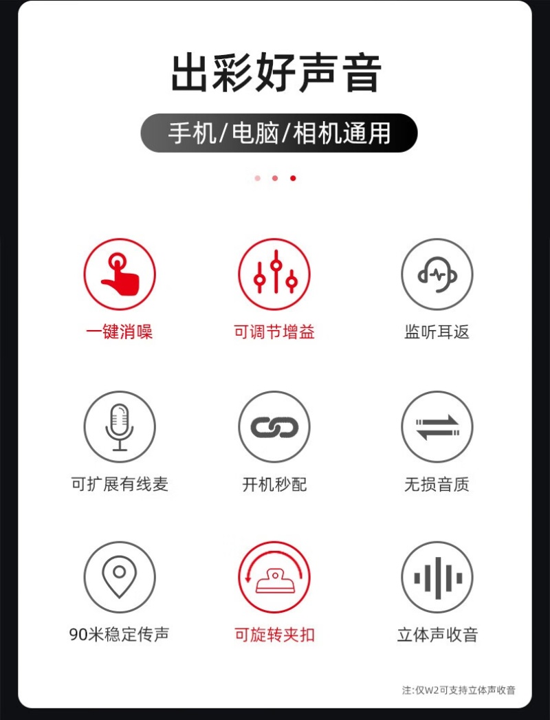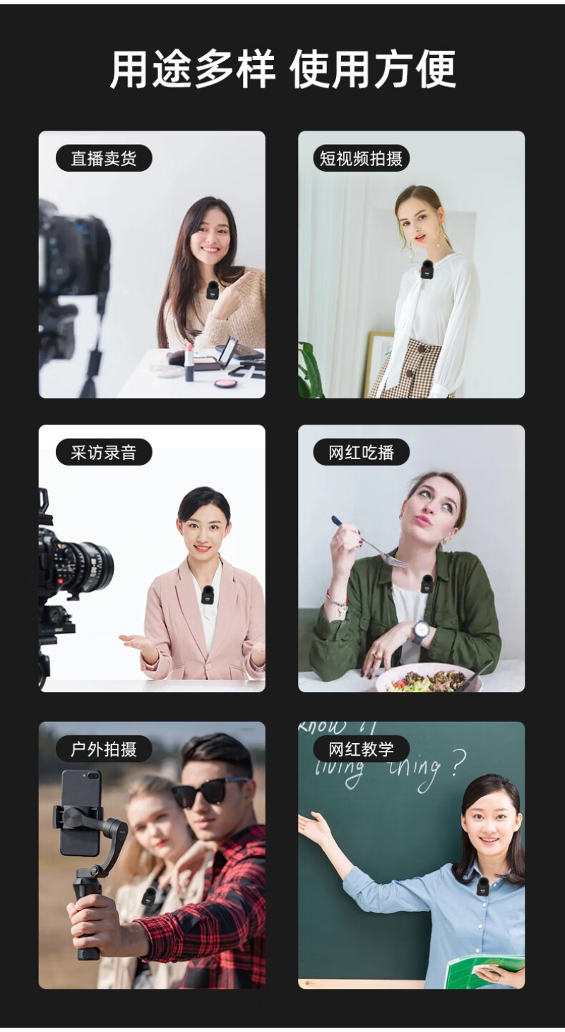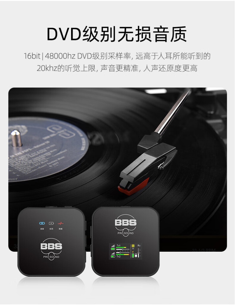 BBS 相机手机小蜜蜂直播、短视频收音话筒 无线领夹麦克风 W1(一拖一) 套 黑色