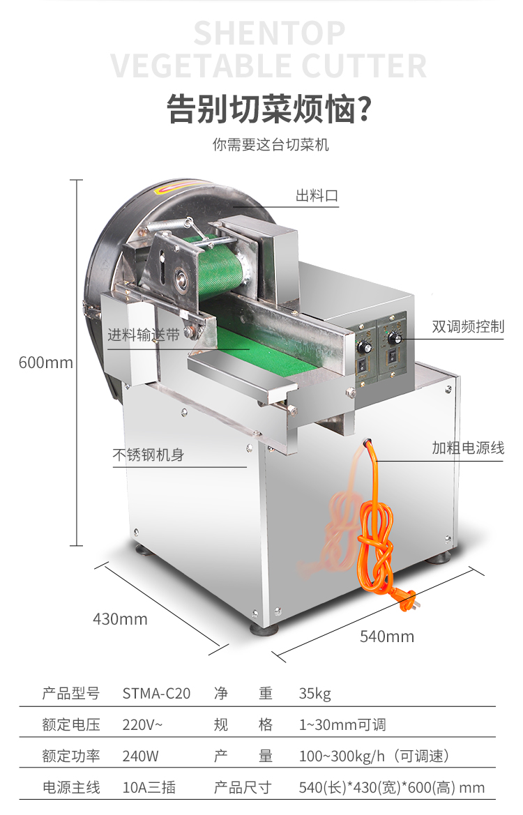 圣托(Shentop)不锈钢多功能切菜机商用 学校食堂土豆胡萝卜切片机 豆角切段切条机 STMA-C20单位:台 不锈钢色