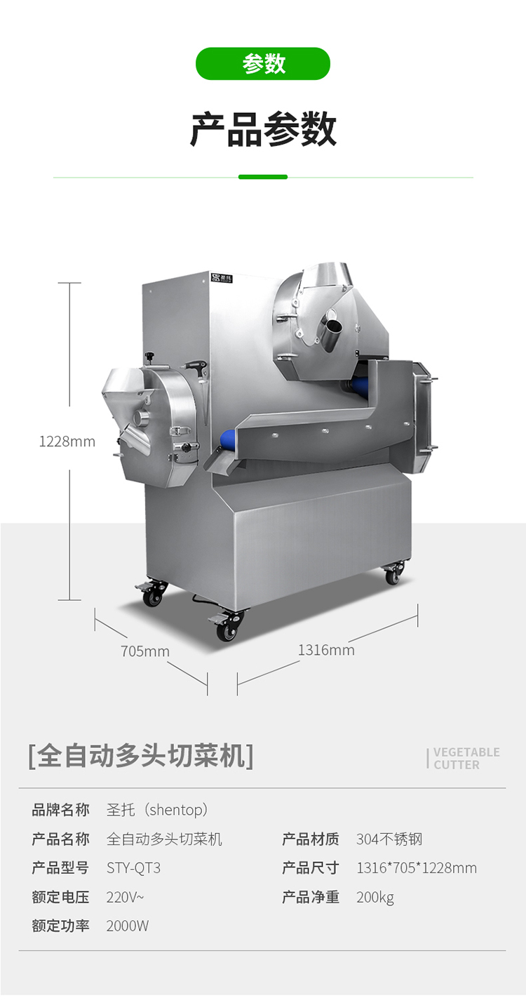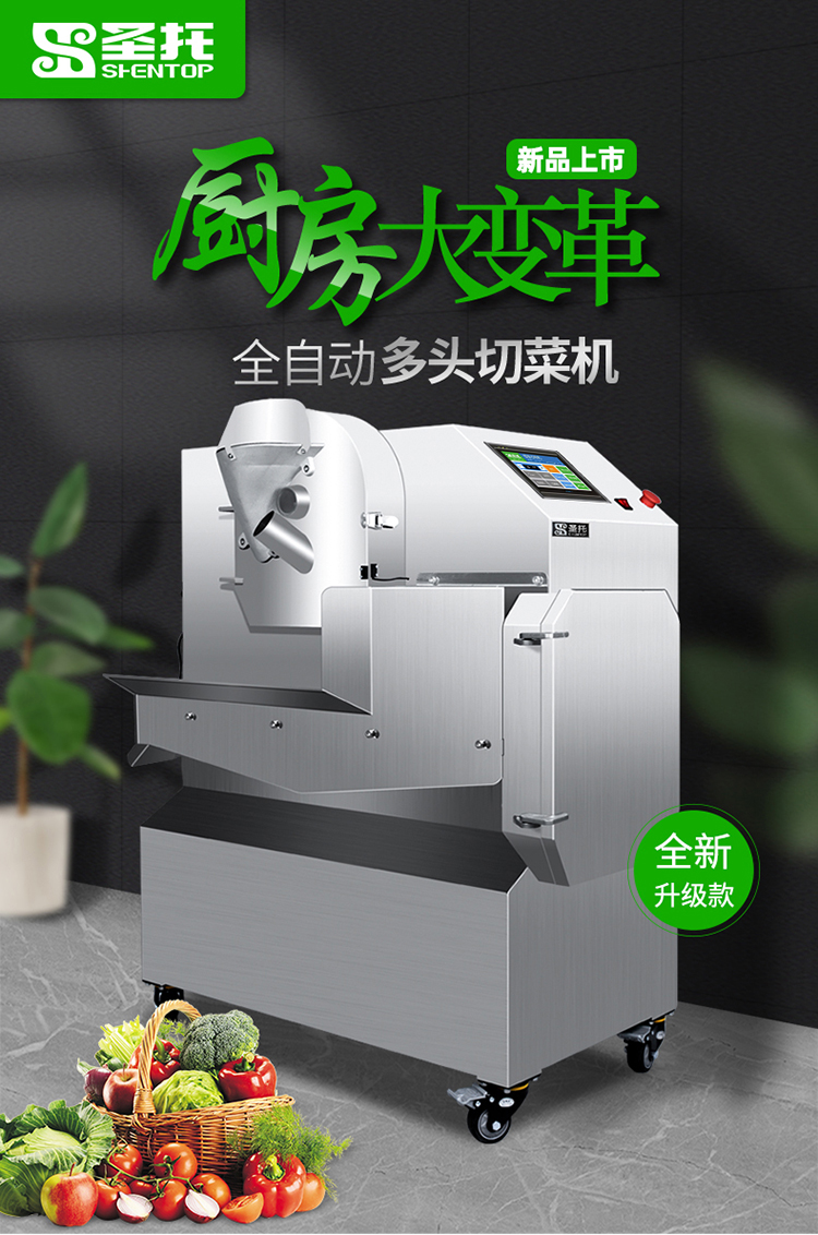 圣托(Shentop)多功能智能切菜机商用 饭店厨房蔬菜切丁切粒机 土豆切片切丝机豆角切段机STY-QT3(单位:台)) 不锈钢色