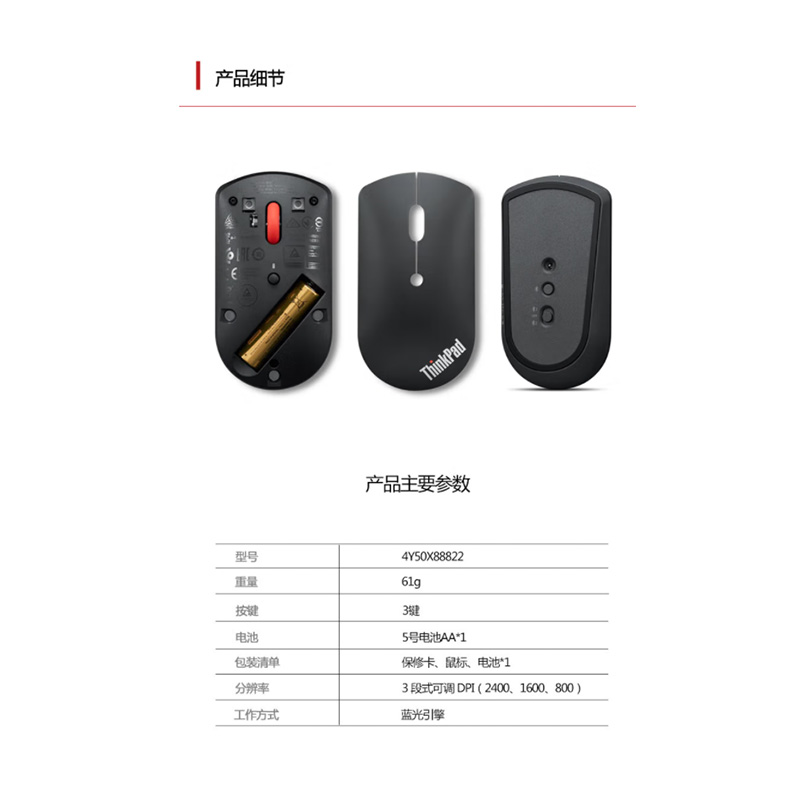 联想 4Y50X88822 无线双蓝牙超薄鼠标 (个) 黑色