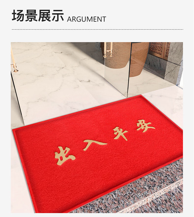 墨斗鱼 出入平安 120*180cm 地垫防水防滑室外脚垫 红色(单位:张)