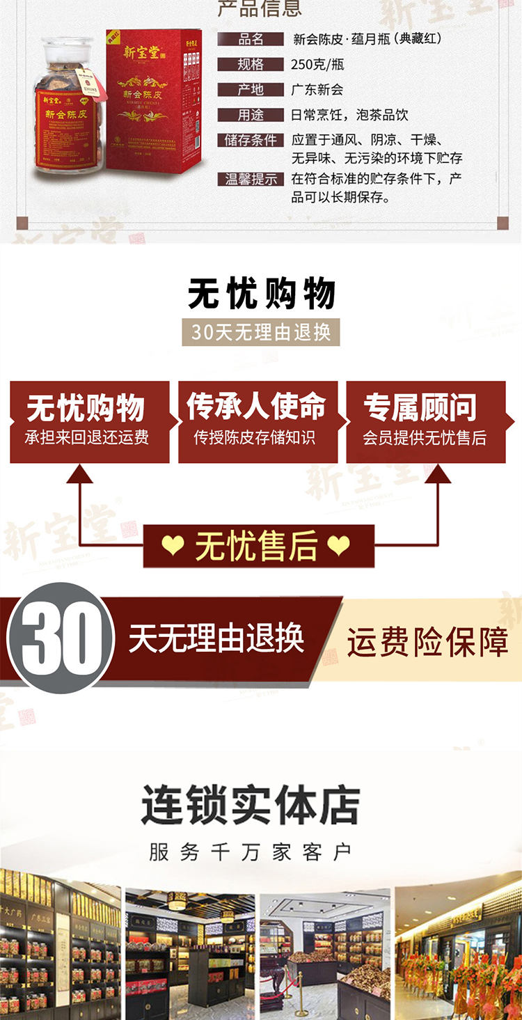 新宝堂二十年陈皮 干仓蕴月瓶(典藏红)250克 红色