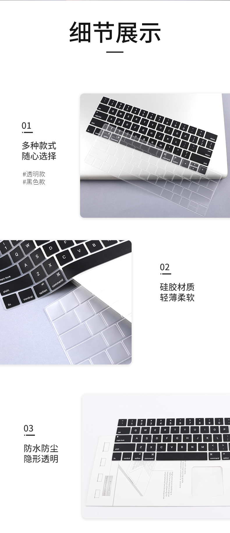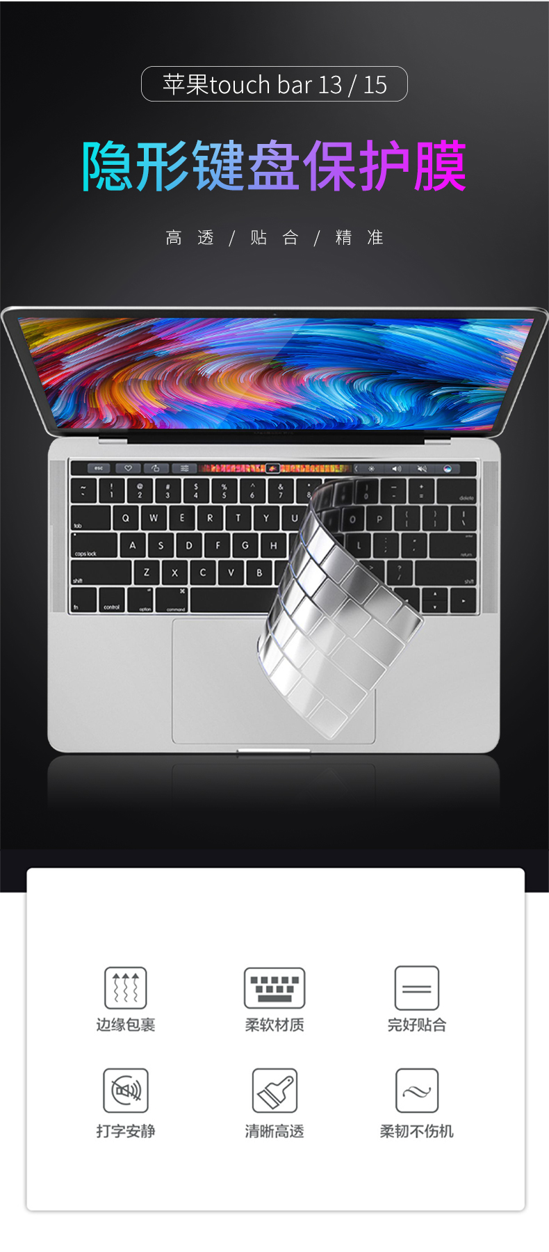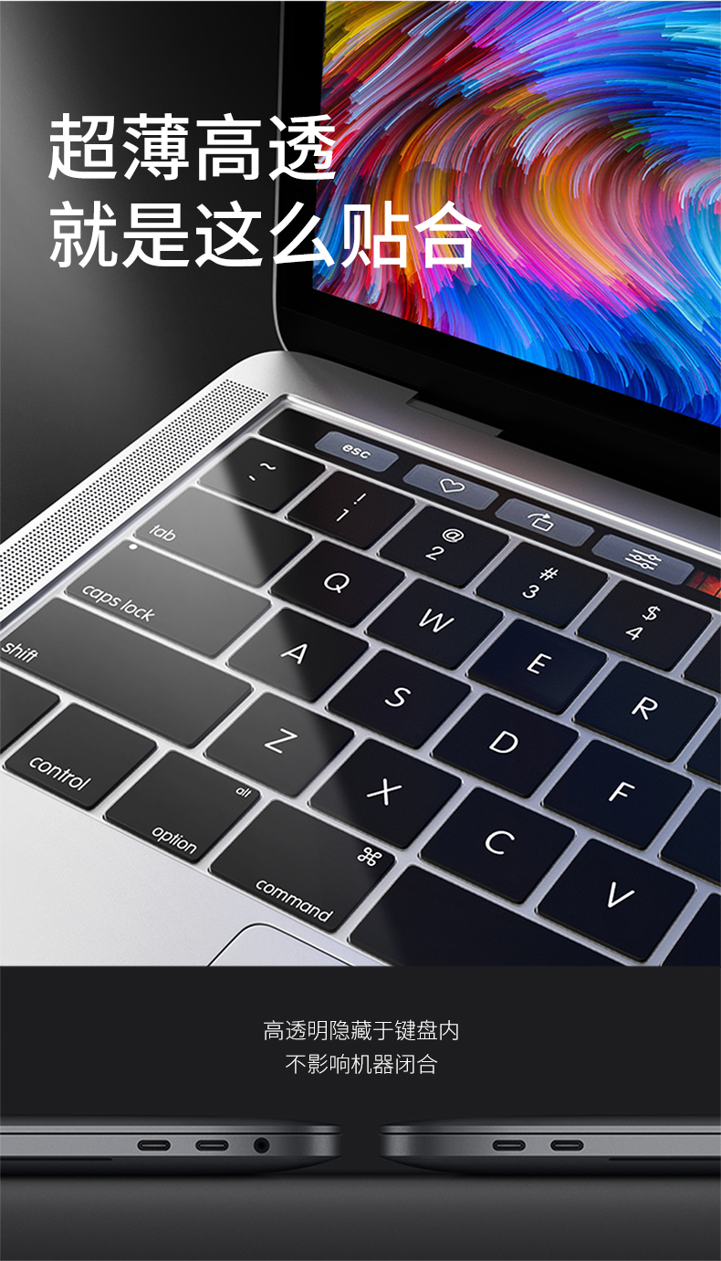 倍方 苹果电脑专用键盘膜 键盘保护膜 防水防尘膜 底部型号A2141/A2251黑色款