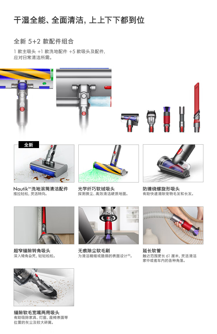 戴森(DYSON)V12 Detect Slim Nautik吸尘洗地机手持无线家用吸拖一体大吸力台 银色