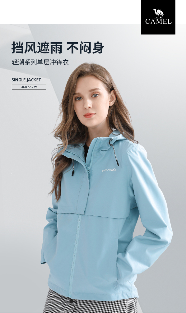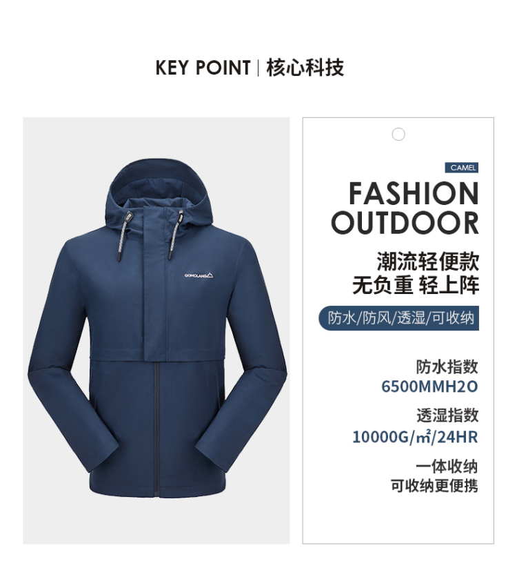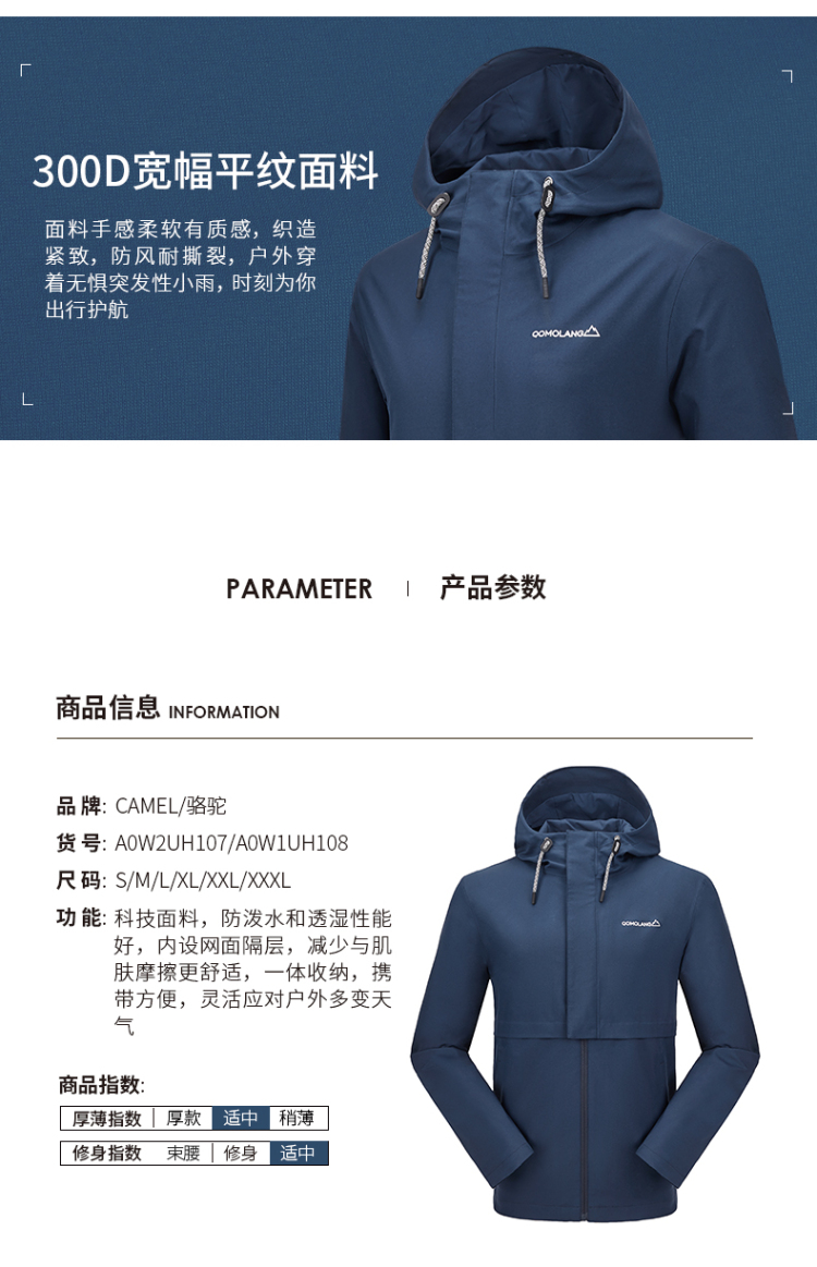 骆驼珠穆朗玛系列冲锋衣男女单层薄外套秋冬旅行登山服装 A0W2UH107 件 幻影黑 XL