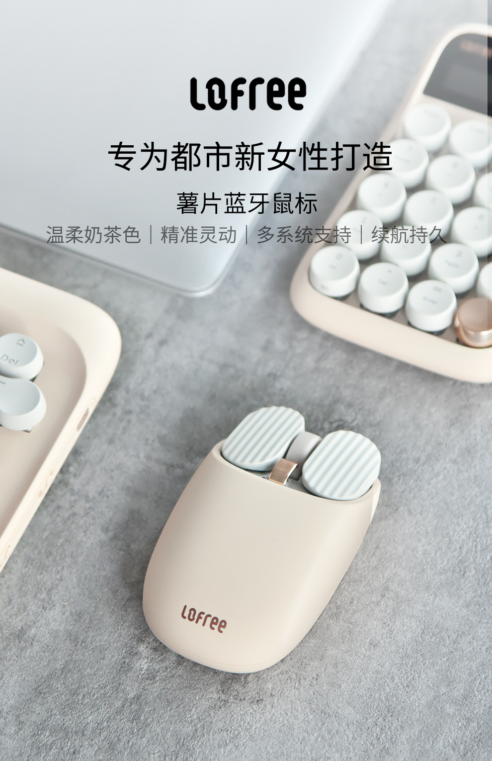 洛斐(LOFREE) LOFREE洛斐蓝牙鼠标无线办公充电(无线鼠标台式电脑家用办公鼠标)个 奶茶