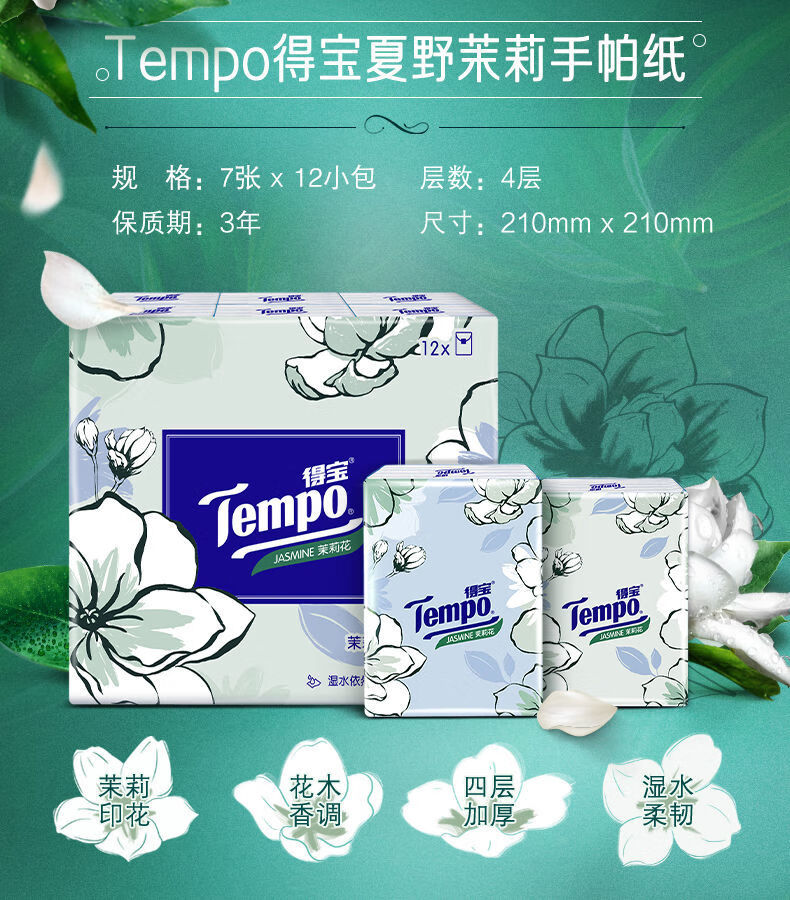 得宝手帕纸茉莉香味4层7张12包T0143-12E(单位:包) 白色
