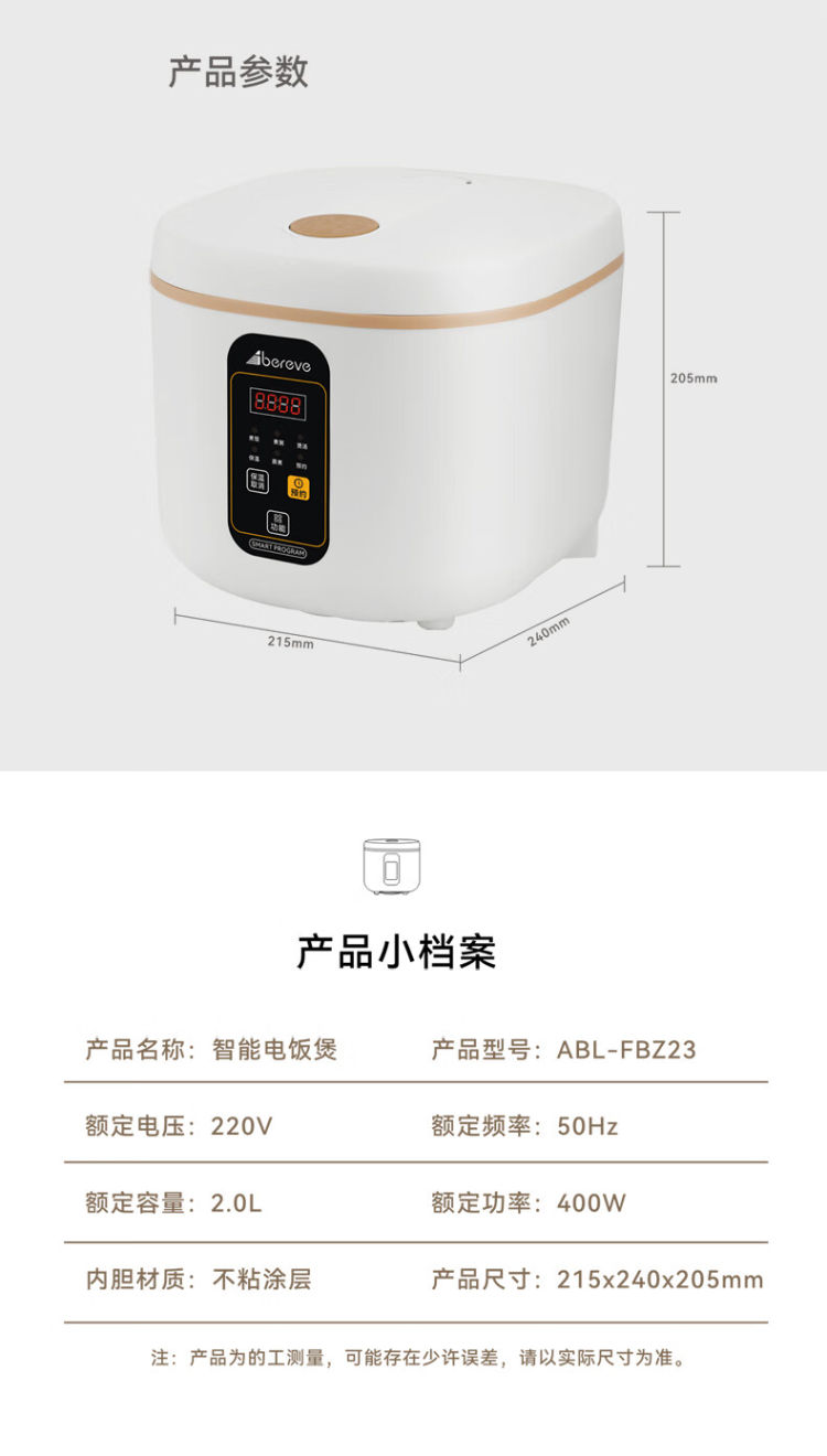艾贝丽 ABL-FBZ23 智能电饭煲2L 单位:台 白色