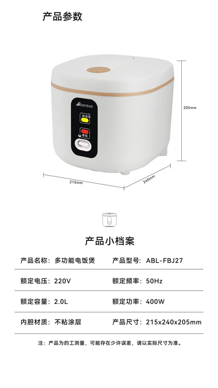 艾贝丽 ABL-FBJ27 电饭煲2L 单位:台 白色