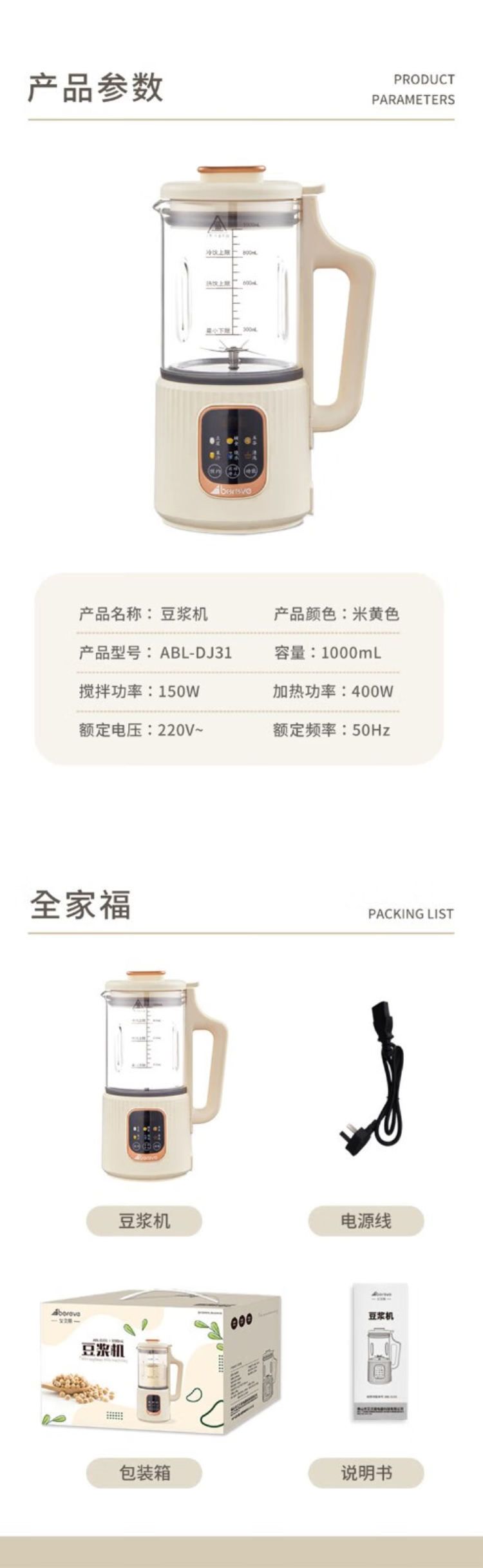 艾贝丽Abereve ABL-DJ31 豆浆机 单位:台 米黄色