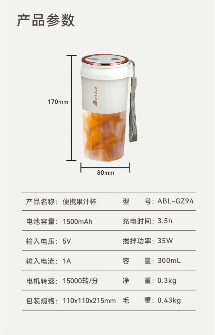 艾贝丽(AIBEILI) ABL-GZ94 便携式果汁机 单位:台 白色