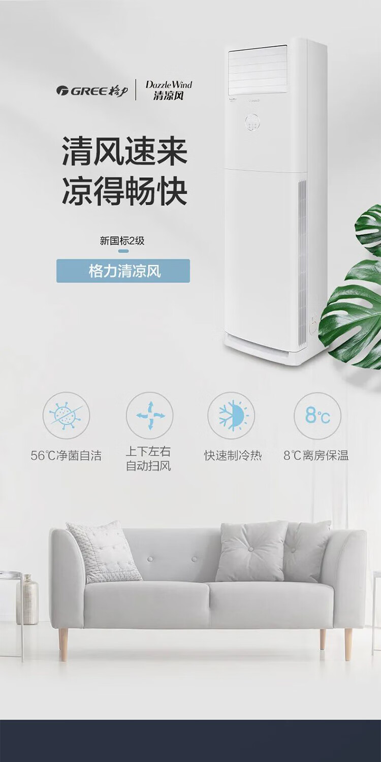 格力(GREE) KFR-50LW/(50536)FNhAc-B2JY01 变频立柜式空调冷暖型(2匹 )二级能效 (20-37平米)(单位:台) 白色