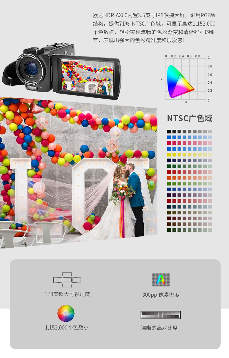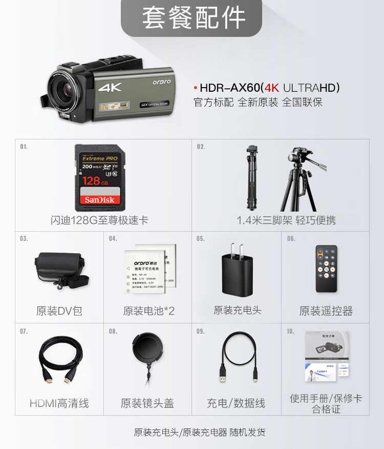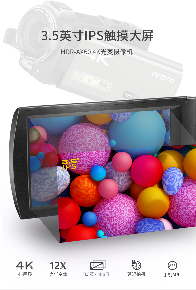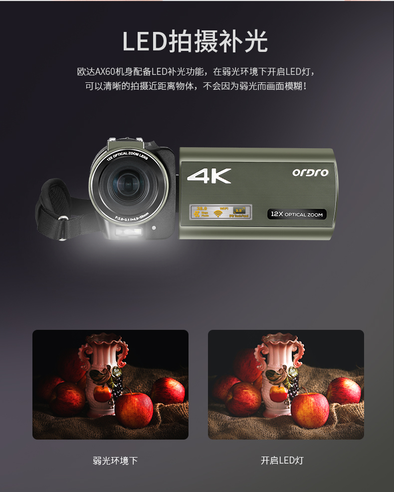 欧达(ORDRO)AX60高清4K数码摄像机便携式数码DV录像机专业婚庆视频直播摄影机 台 黑色