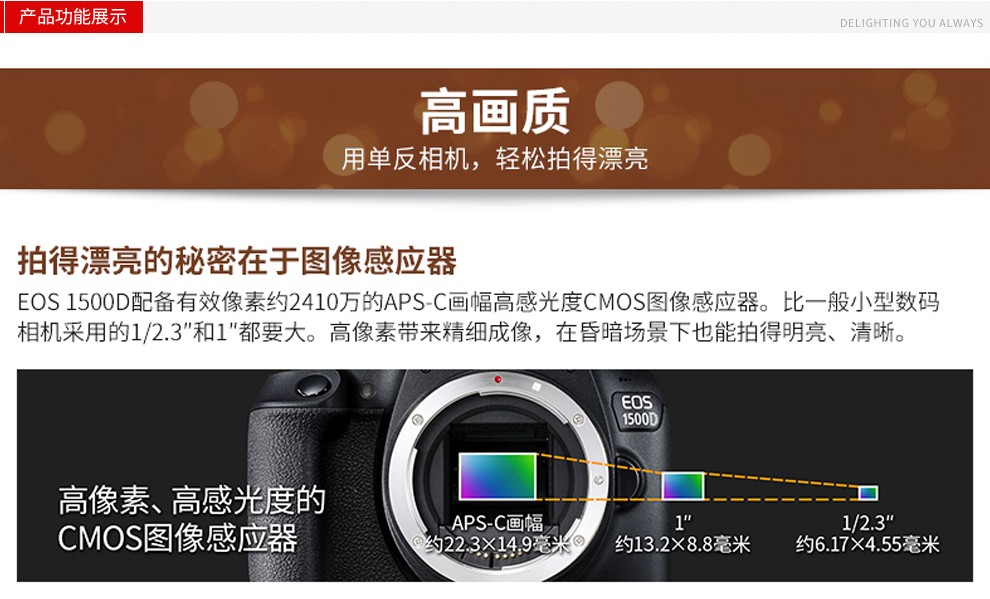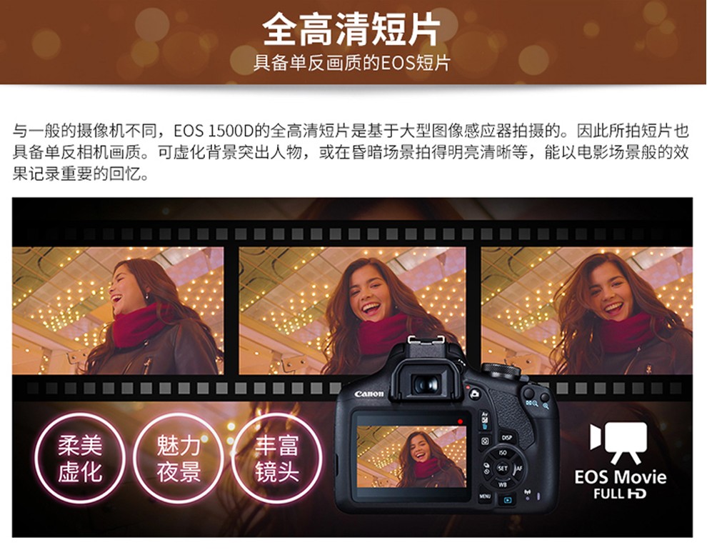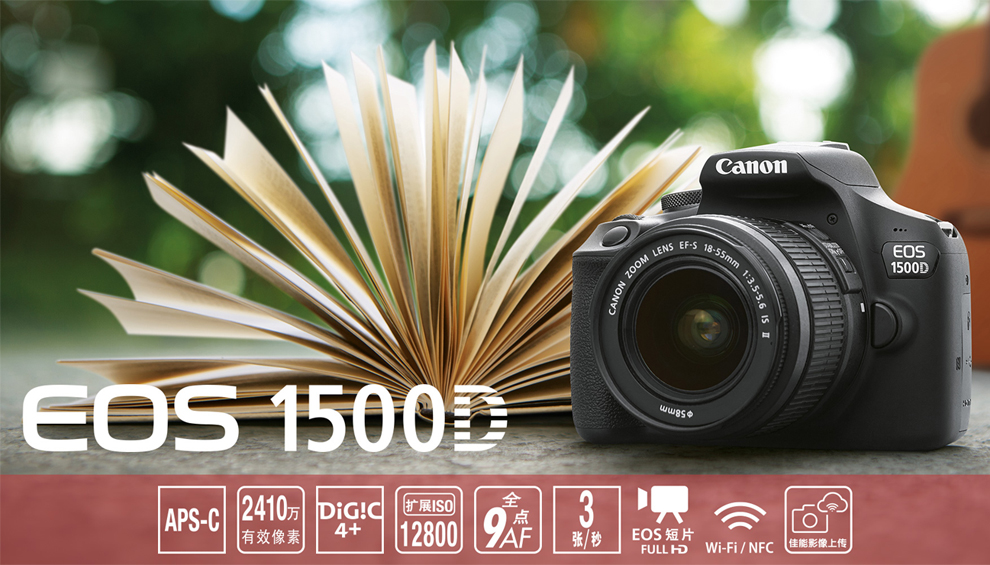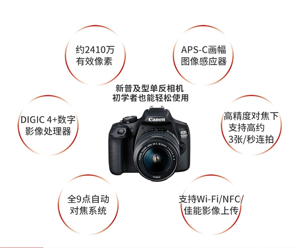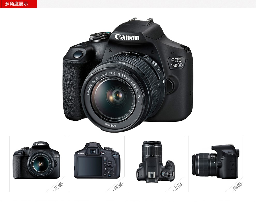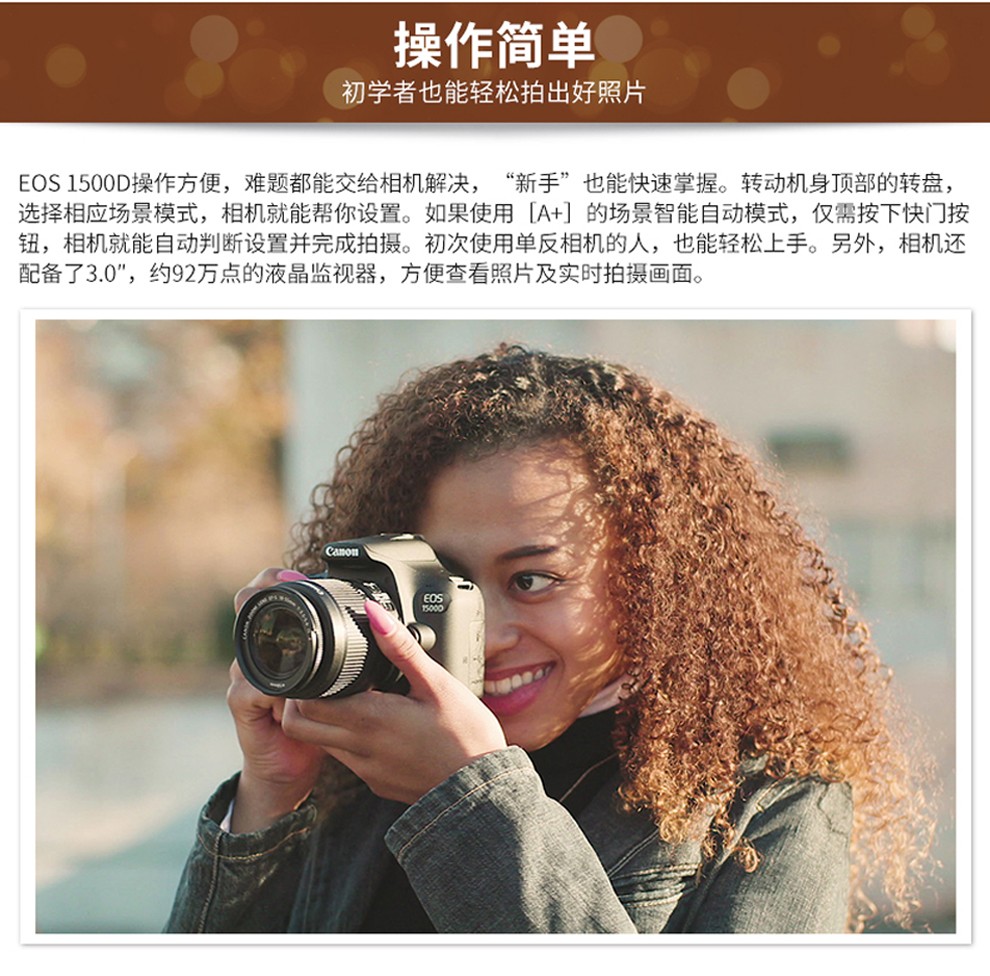 佳能(Canon)EOS 1500D 入门级家用单反相机 18-55标准变焦镜头套装 标配(约2410万像素 全高清视频拍摄) 台 黑色