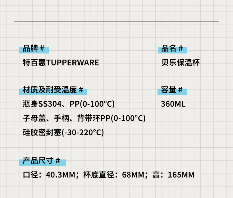 特百惠贝乐保温杯 11165578(单位:个) 冰泉蓝