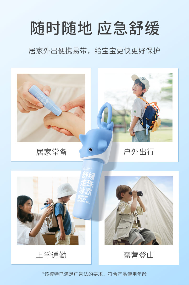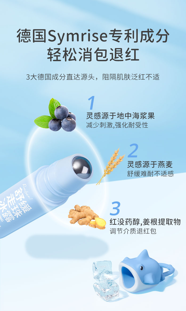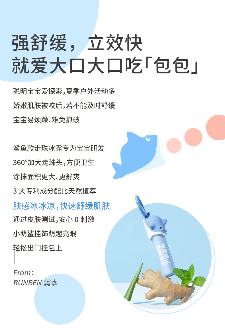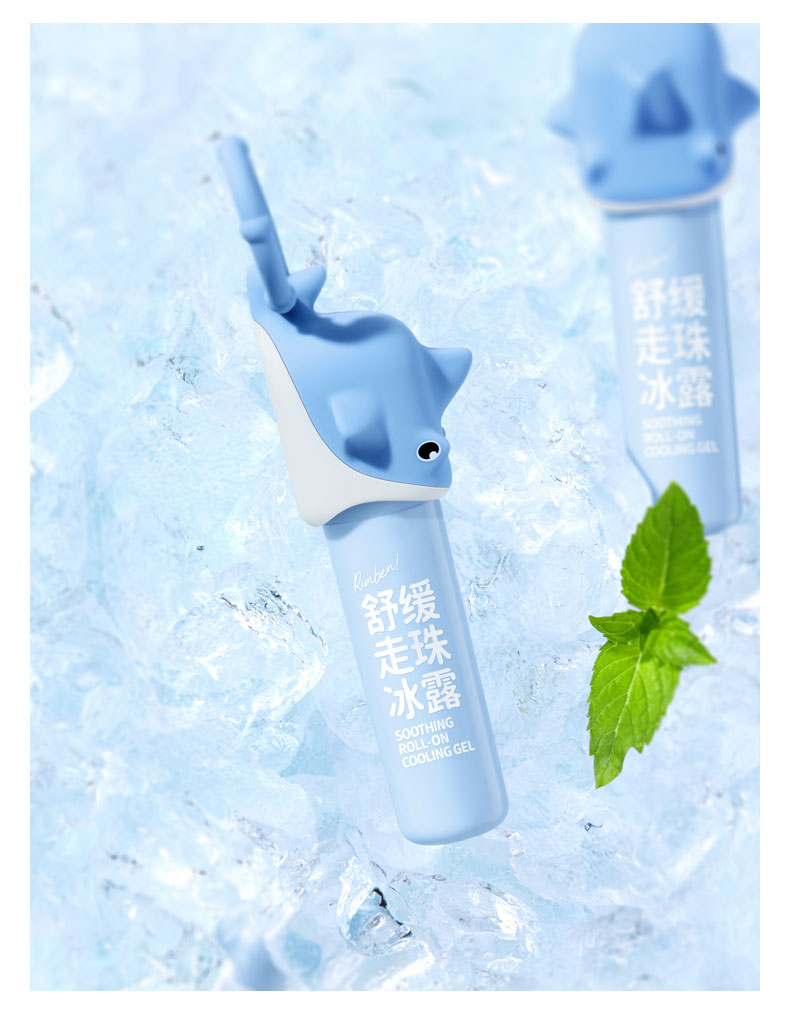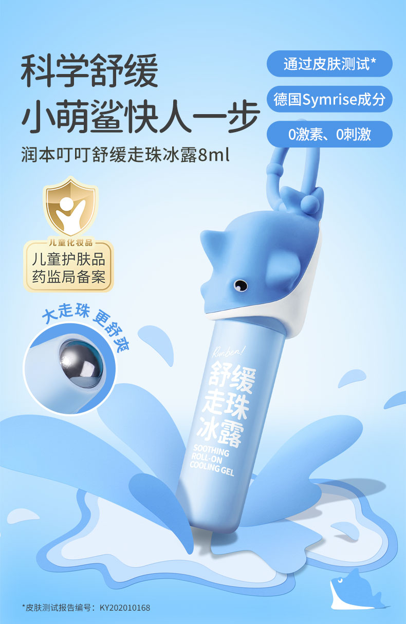 润本叮叮舒缓走珠冰露8ml+叮叮趣味硅胶套壳1条装(呆萌大鲨)(单位:盒) 天蓝色