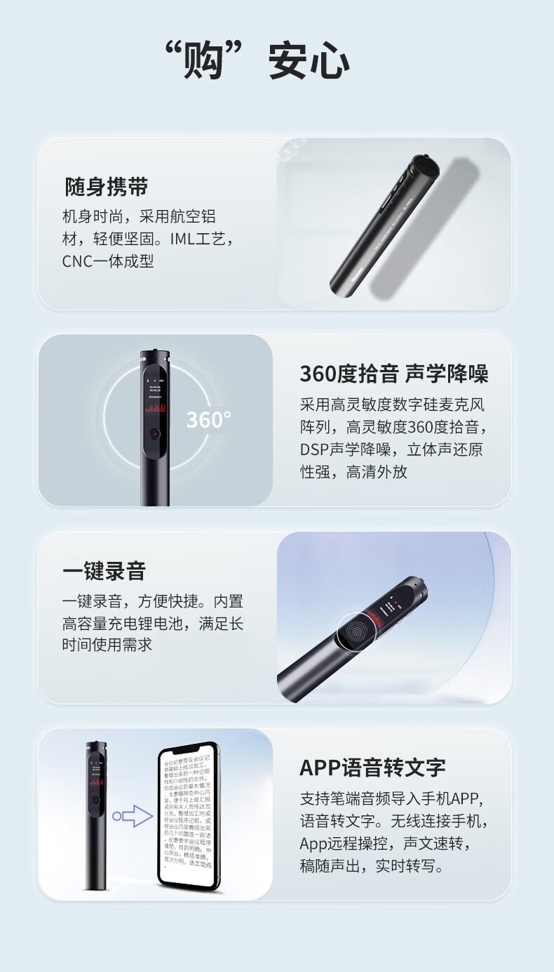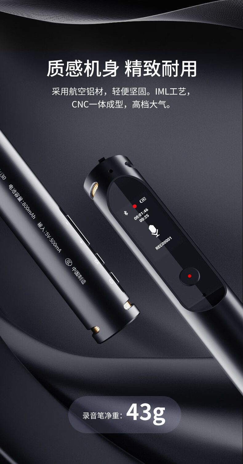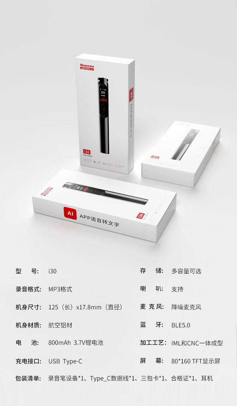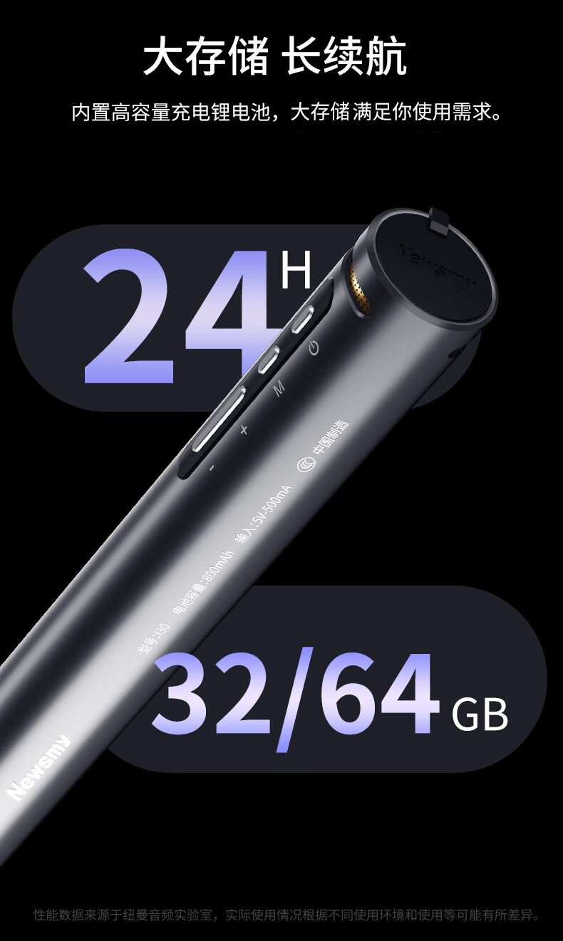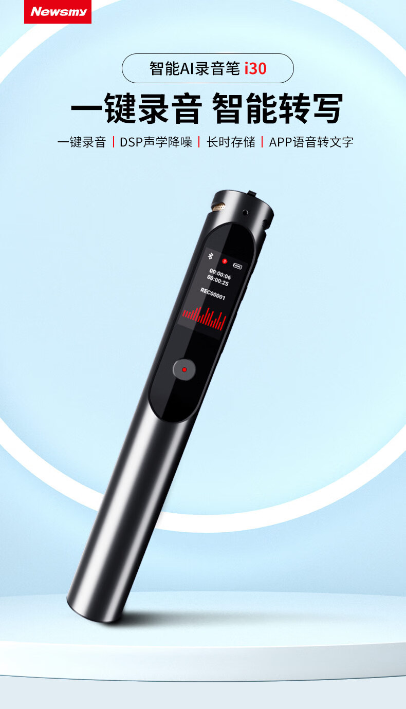 纽曼AI智能录音笔 i30 转写助手 32G+云存储 专业高清降噪 会议录音转文字黑色(单位:个) 灰色