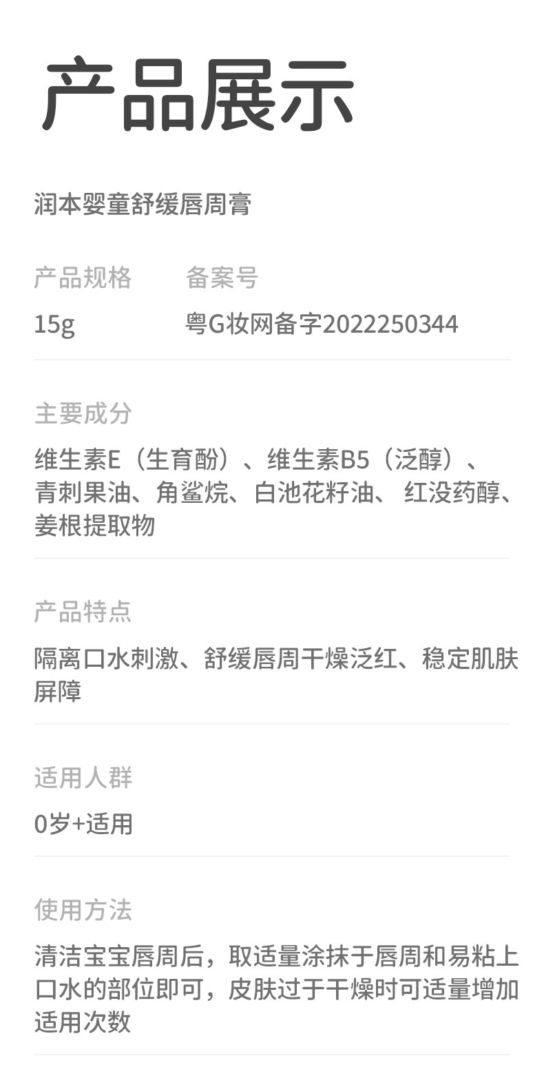 润本婴童舒缓唇周膏 15g(单位:盒) 白色