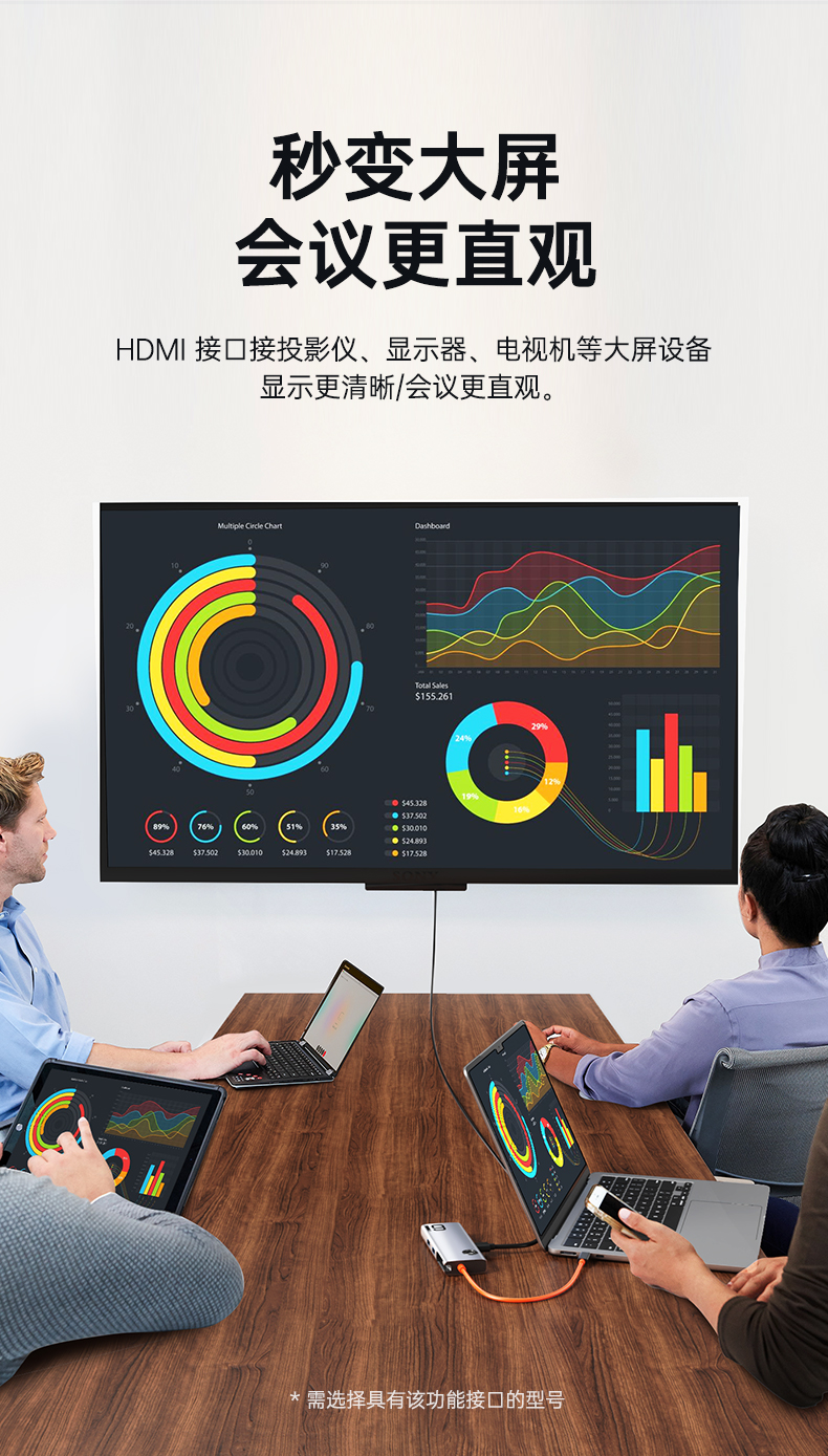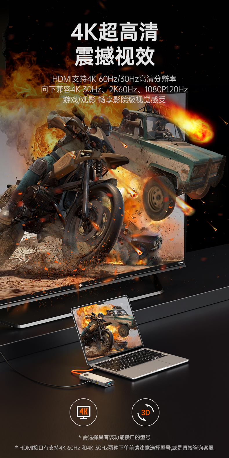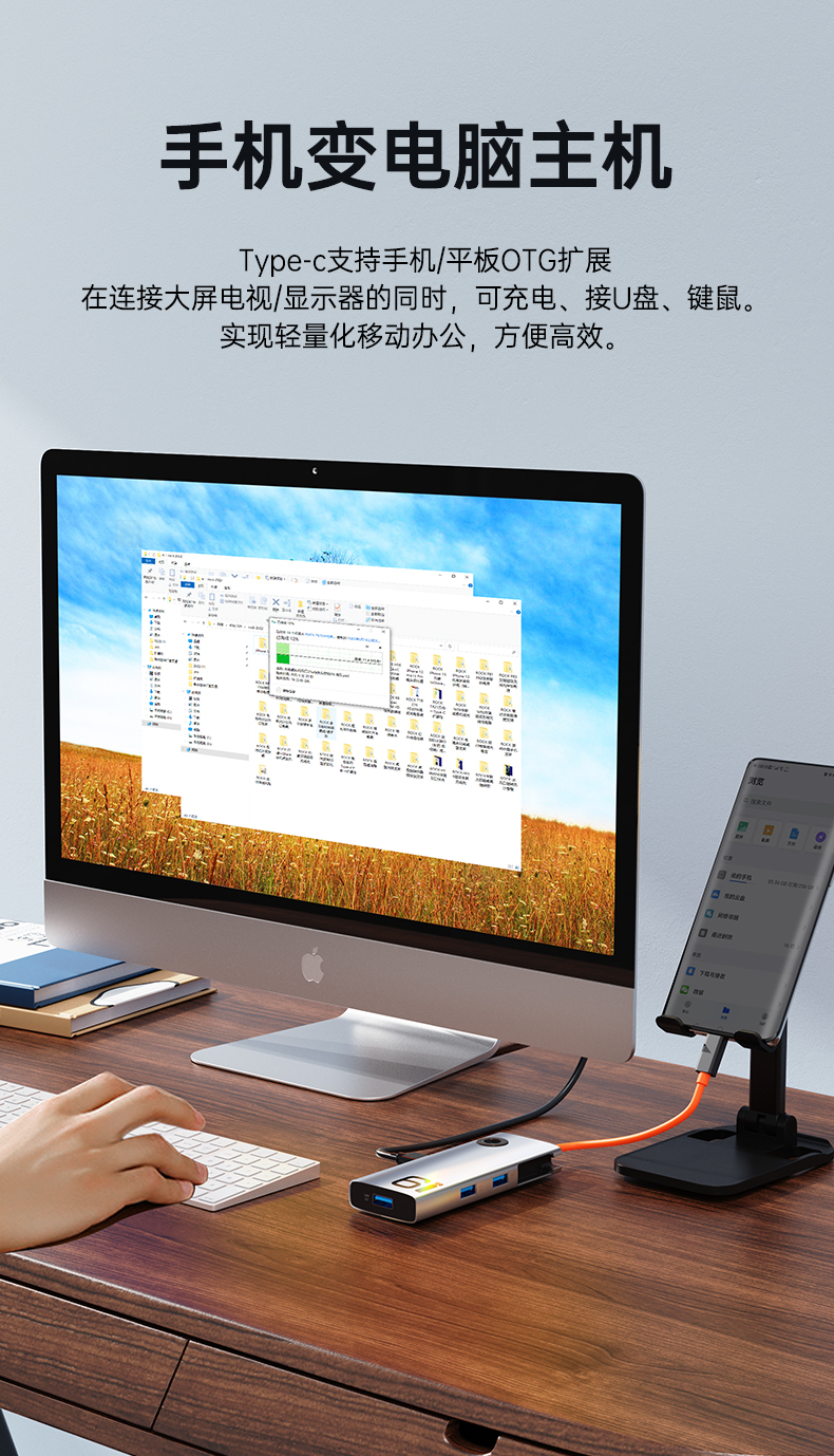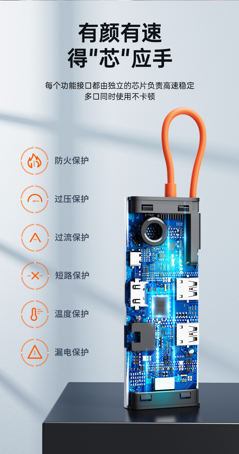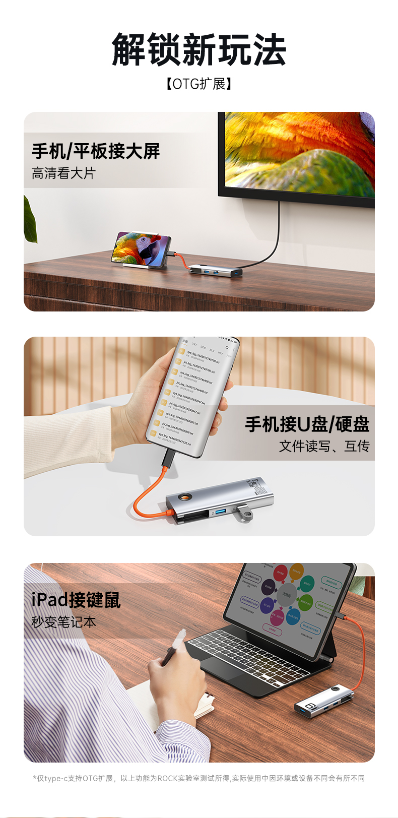洛克(ROCK) TR32 TR28 HDMI(4K30Hz)+千兆网+PD快充+USB3.0*3 六合一扩展坞 RCB-0890(单位:个) 银色+黑色