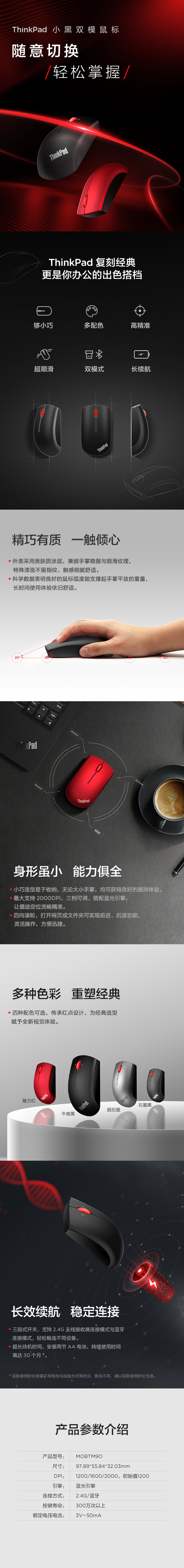 联想ThinkPad无线蓝牙双模鼠标 石墨黑 小巧便携 商务办公鼠标ThinkBook/ThinkPad笔记本、台式机 黑色