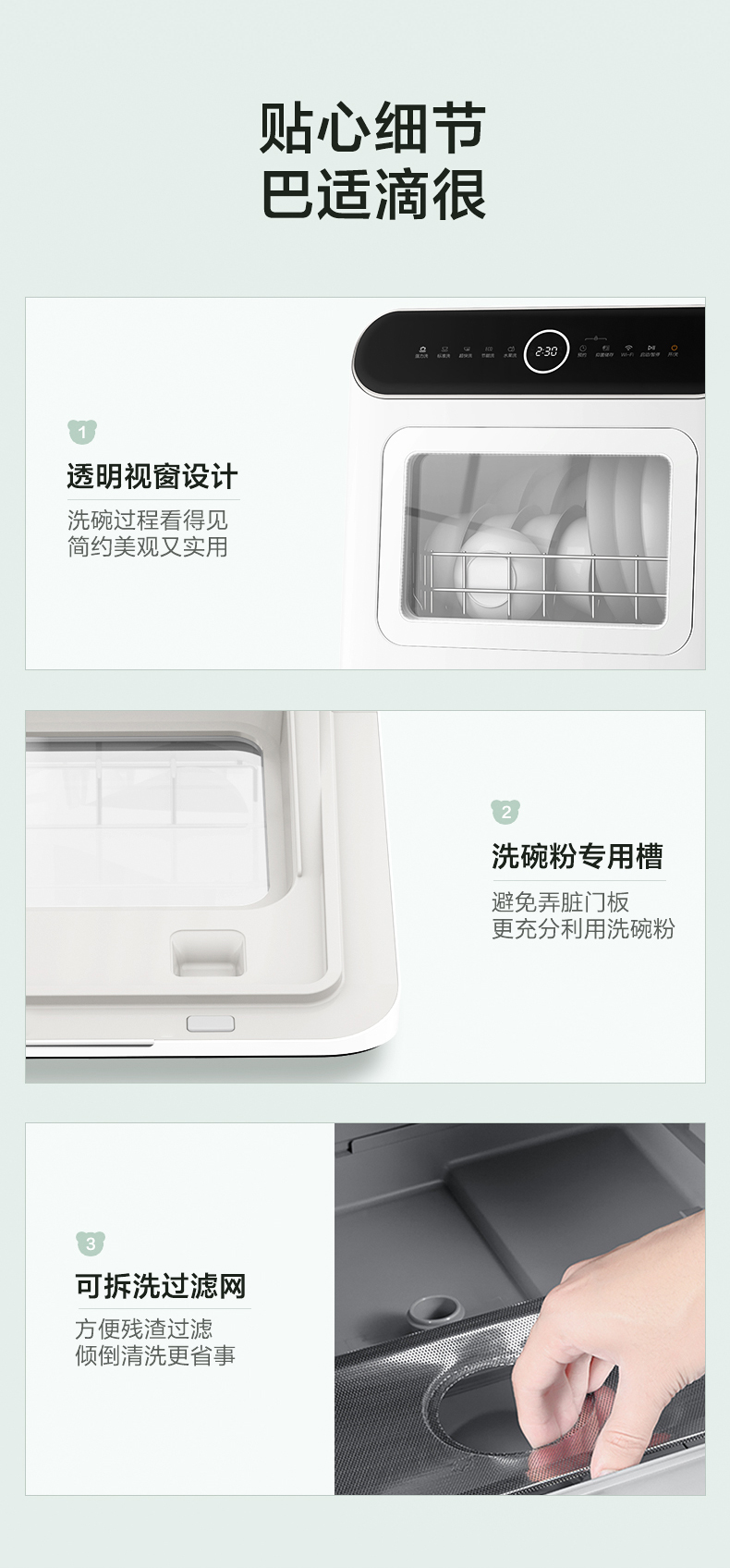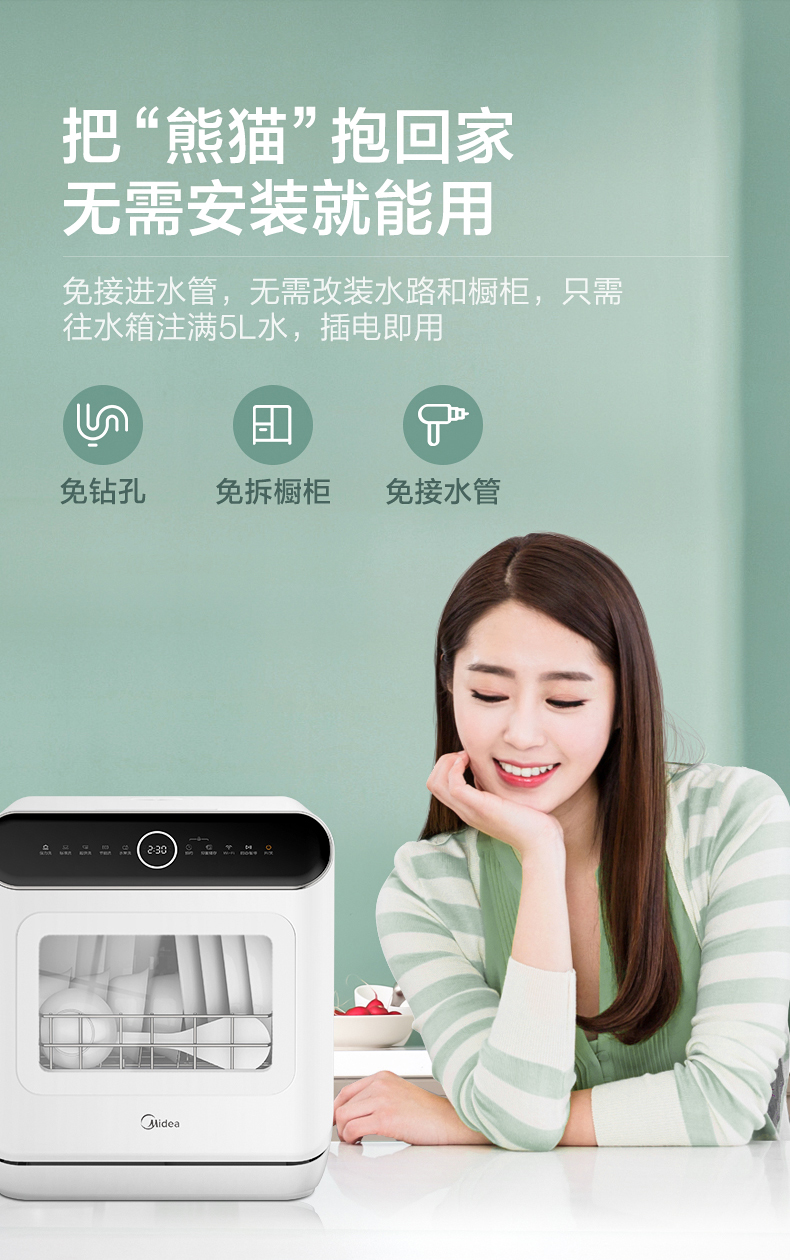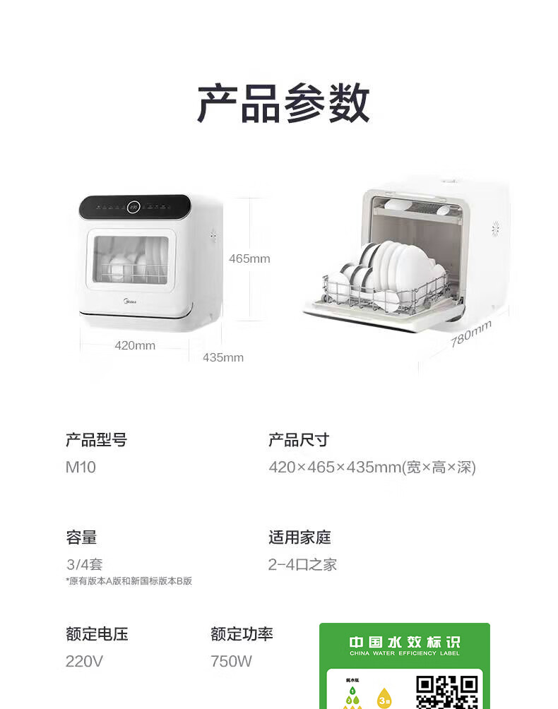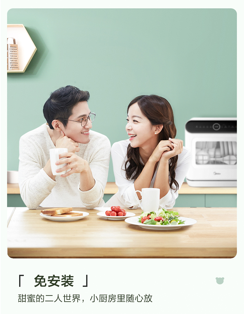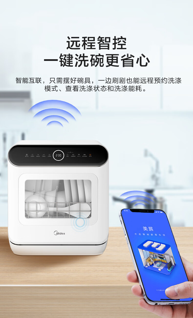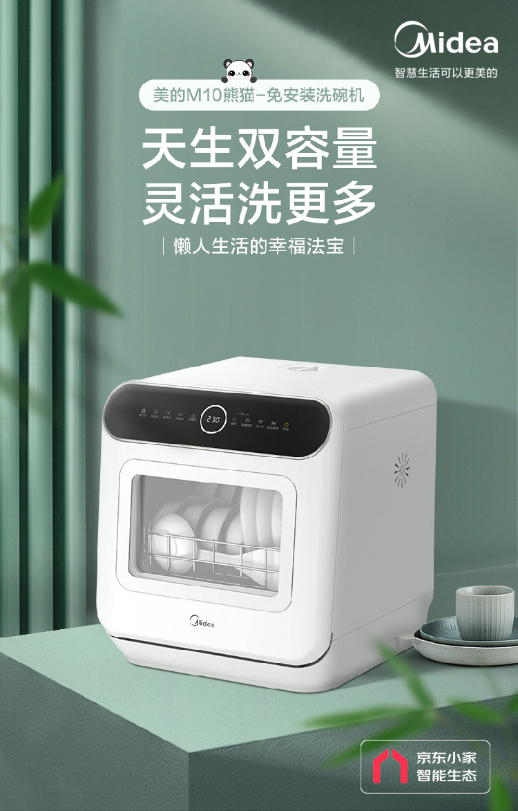 美的(Midea)洗碗机台式M10 高温除菌 新风干燥 双层碗篮 海鲜水果洗 家用易安装(单位:台) 钢琴白