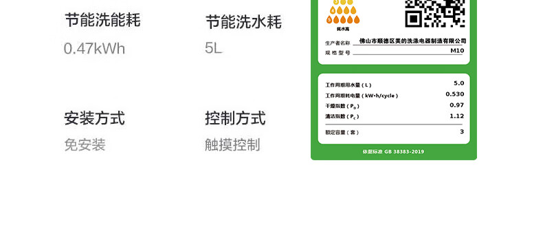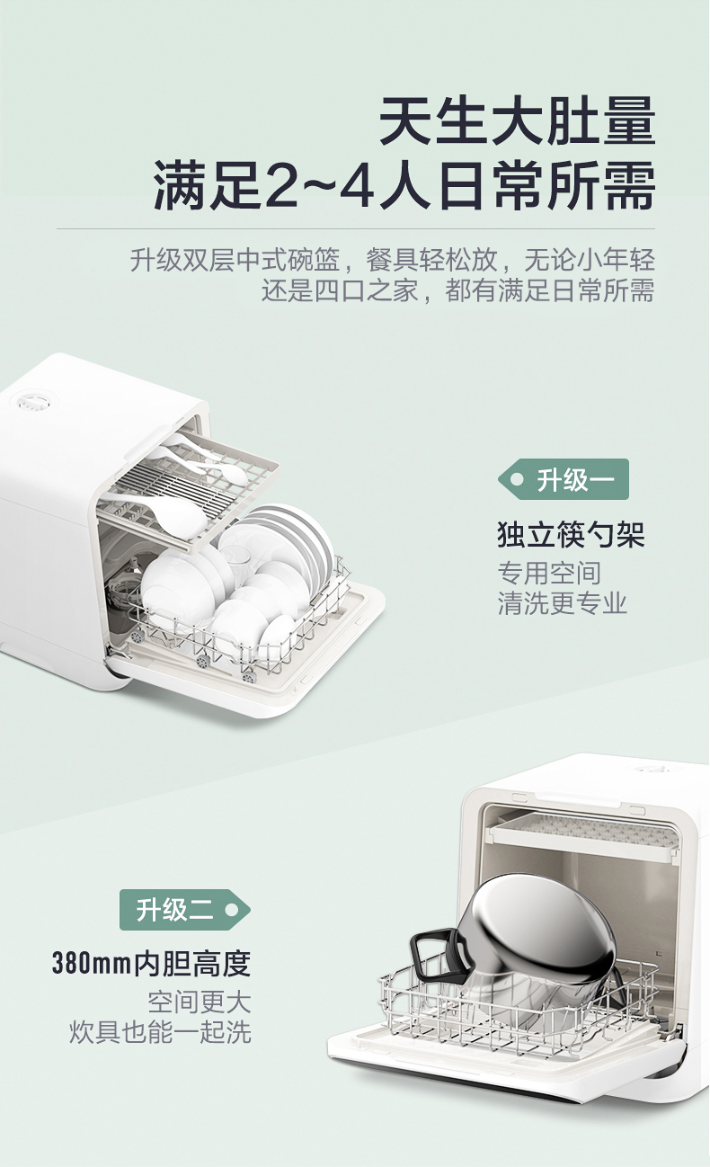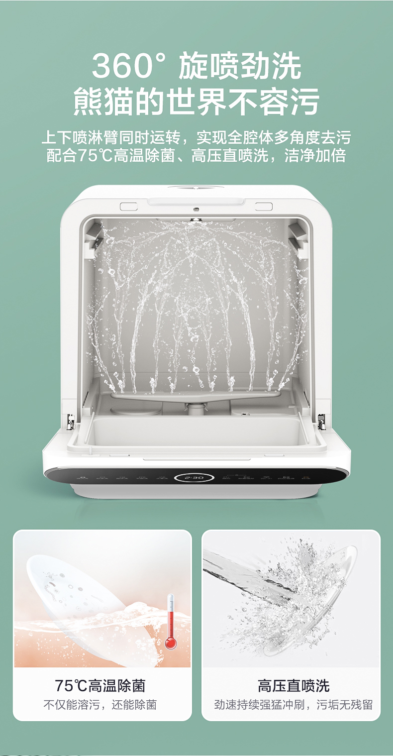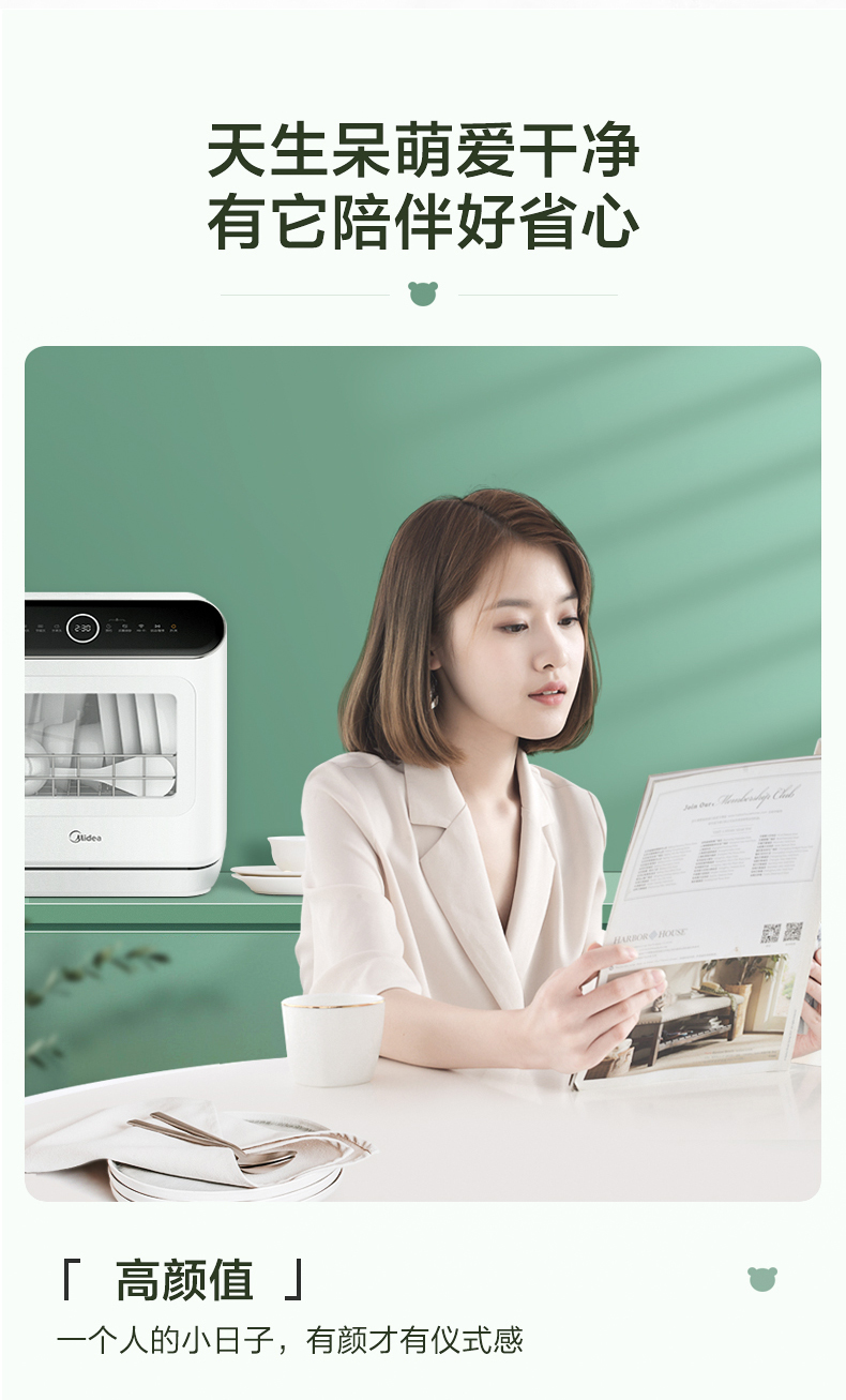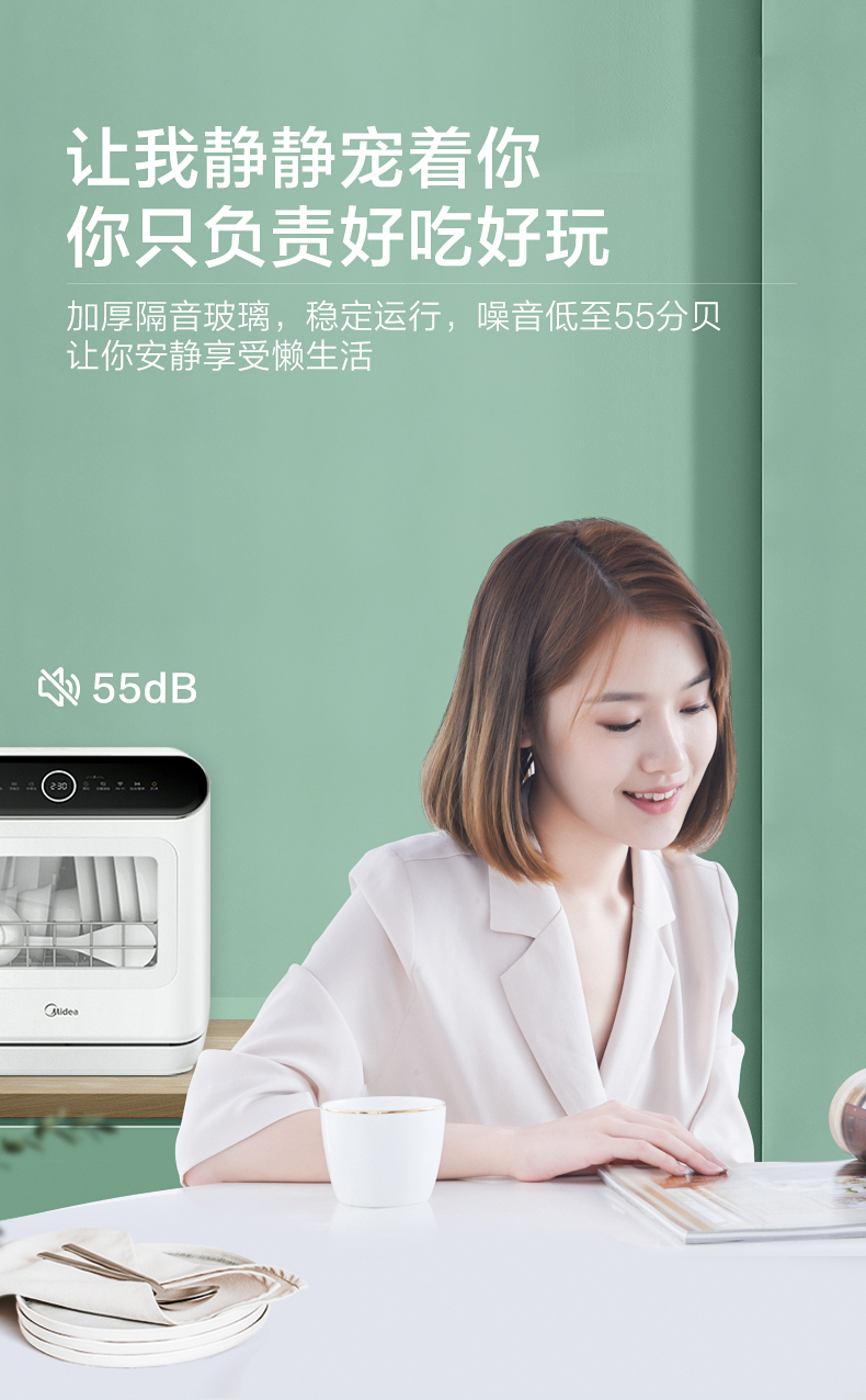 美的(Midea)洗碗机台式M10 高温除菌 新风干燥 双层碗篮 海鲜水果洗 家用易安装(单位:台) 钢琴白