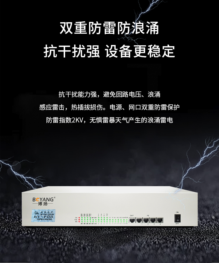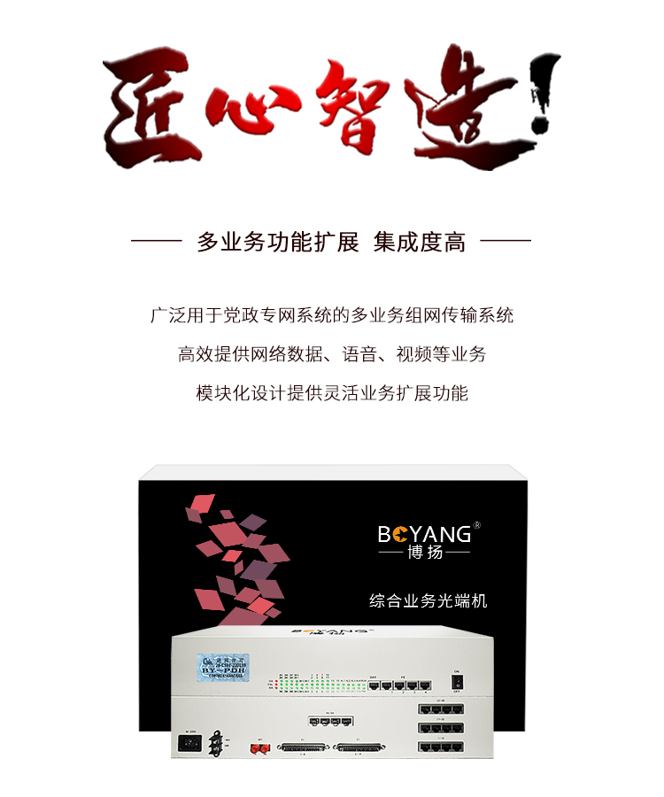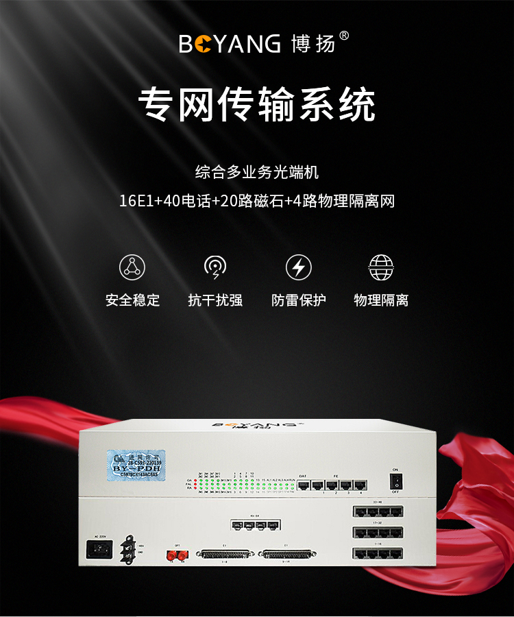博扬 综合业务电话光端机 16E1+40电话+20路磁石+4路物理隔离网 单纤120公里 6U机架式 1对BY-16E1-40P20H4EV 白色