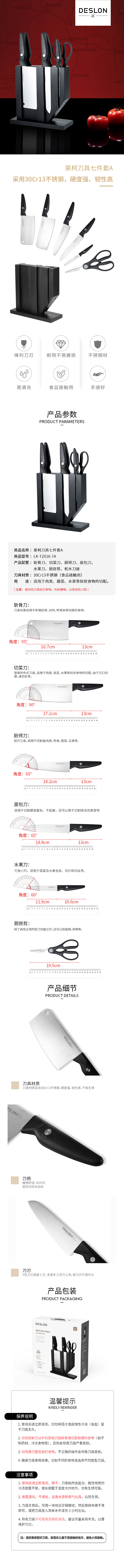 德世朗(DESLON)莱柯刀具七件套A LK-TZ016-7A(单位:套) 黑色