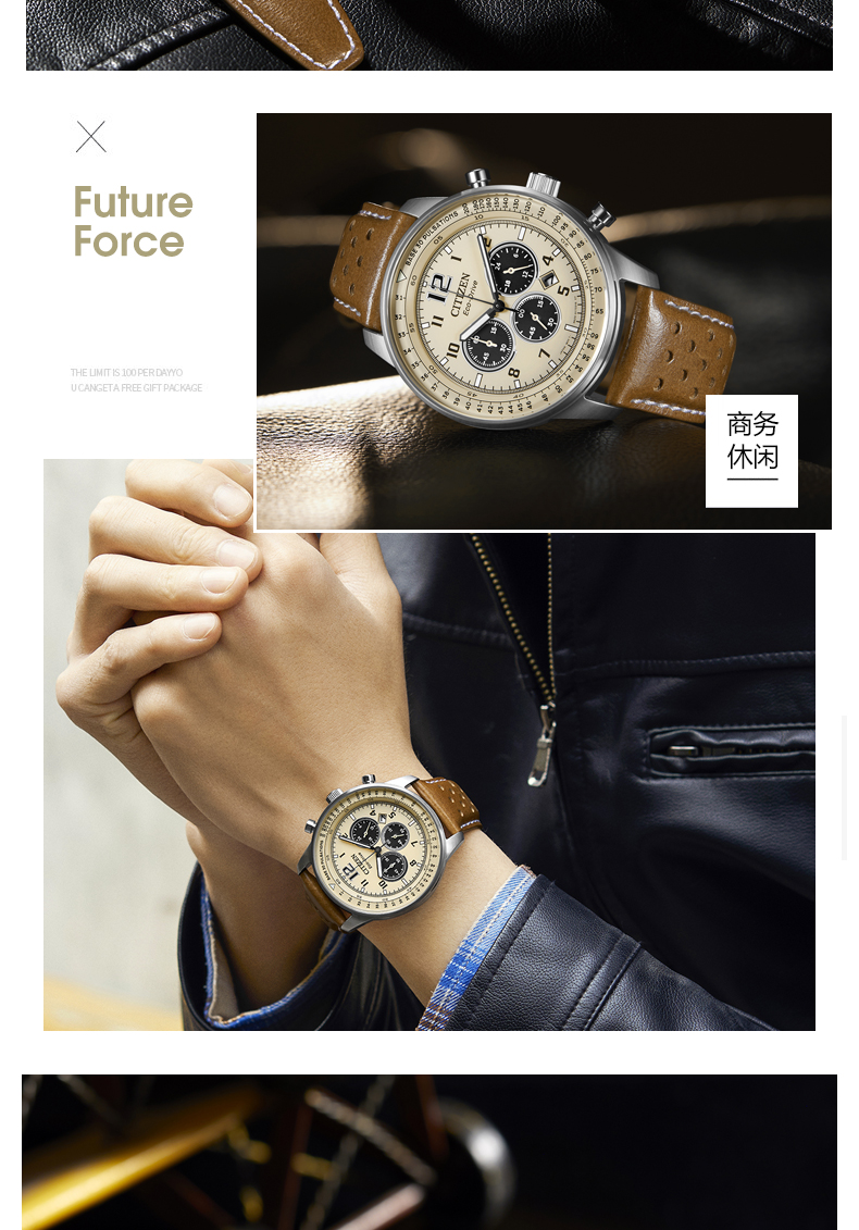 Citizen西铁城 FF系列 光动能手表日期显示时尚商务蓝盘钢带男表CA4505-80L 块 蓝色