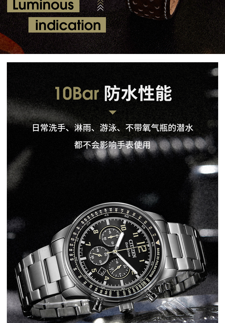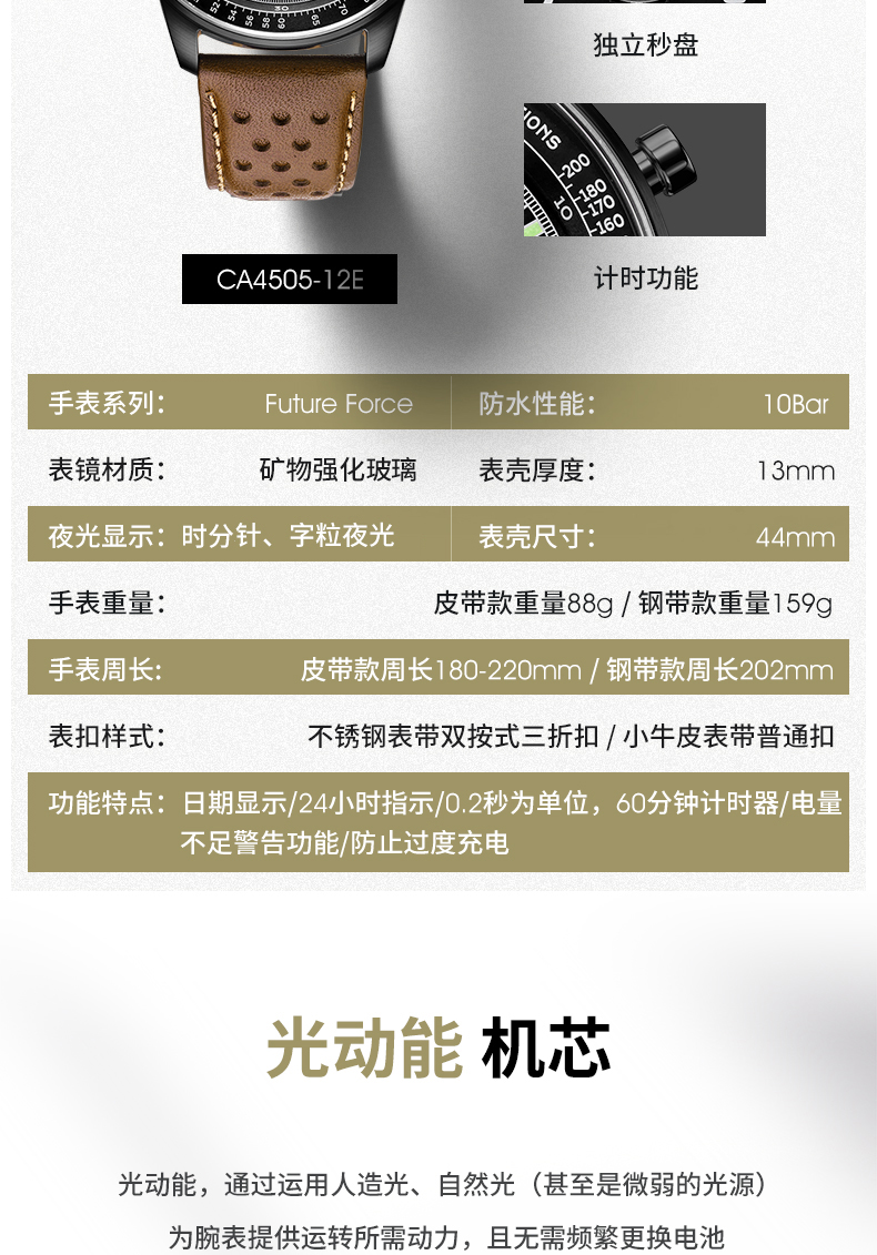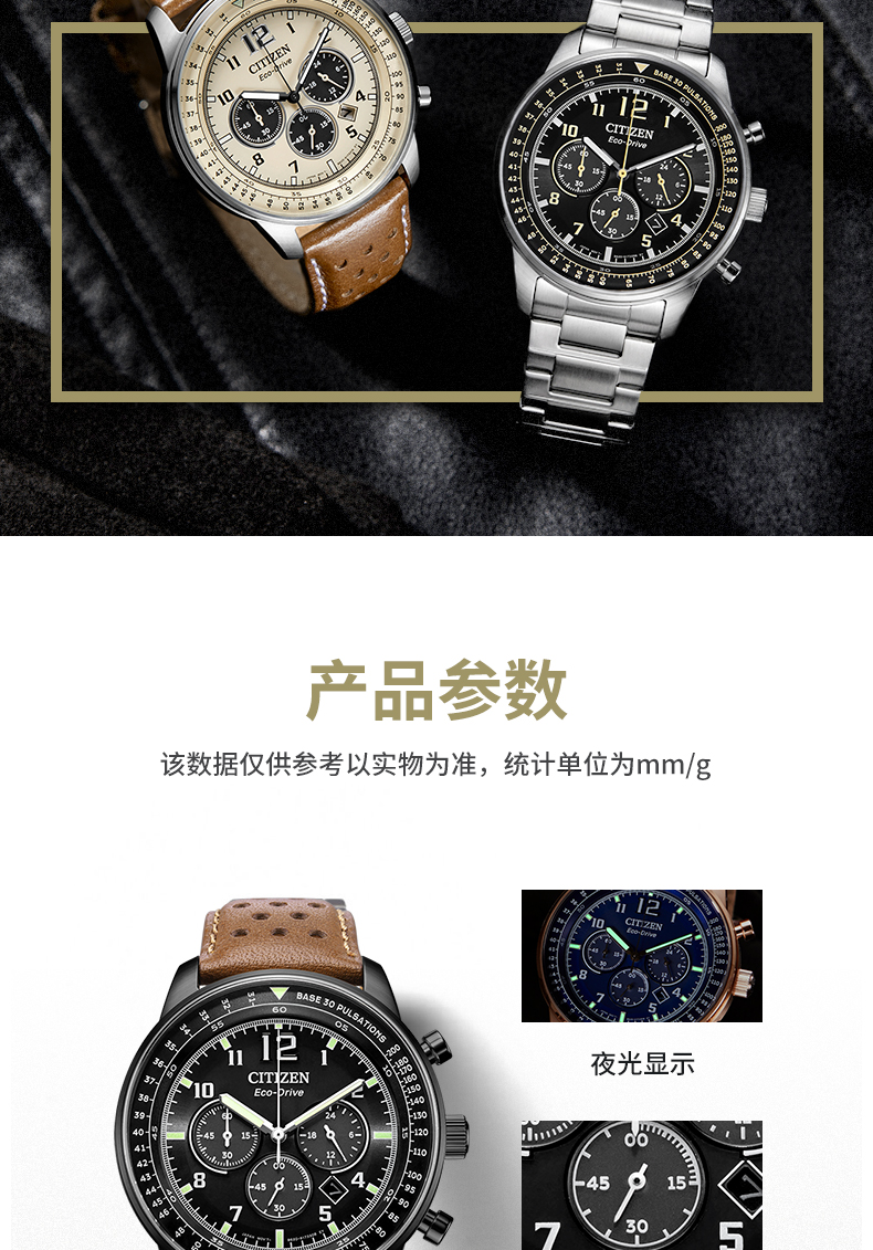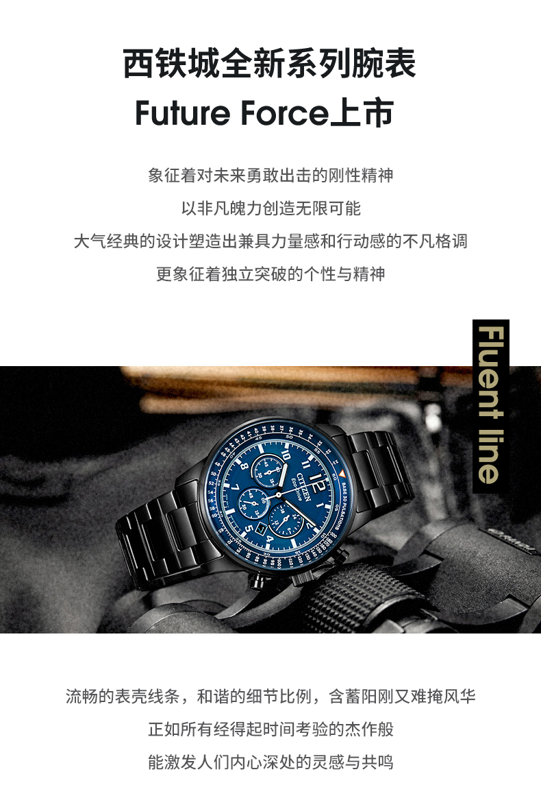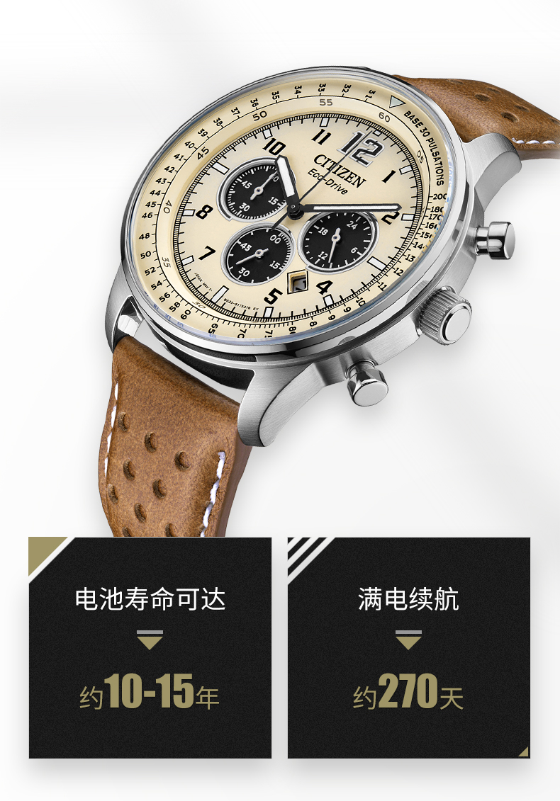 Citizen西铁城 FF系列 光动能手表日期显示休闲时尚蓝盘皮带男表CA4503-18L 块 蓝色