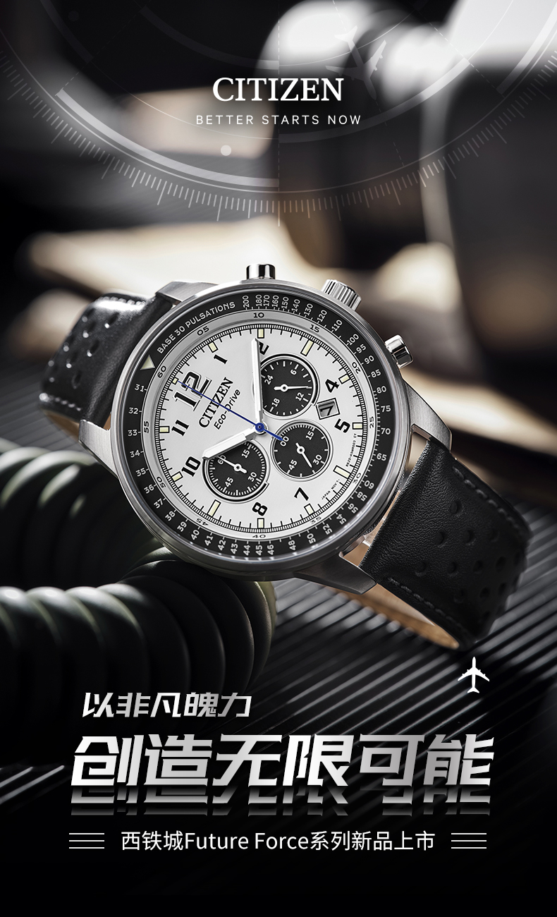 Citizen西铁城 FF系列 光动能手表新配色休闲时尚男表CA4500-24H(单位:块) 白色