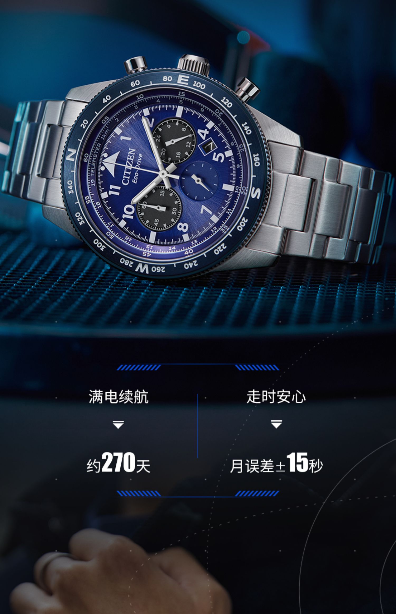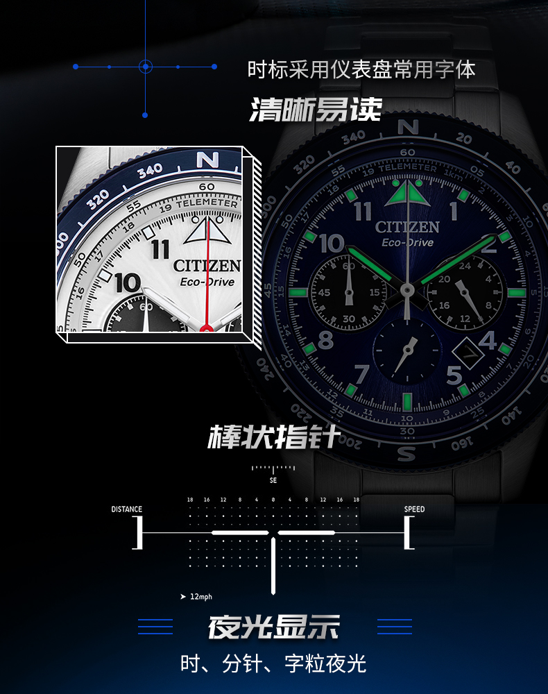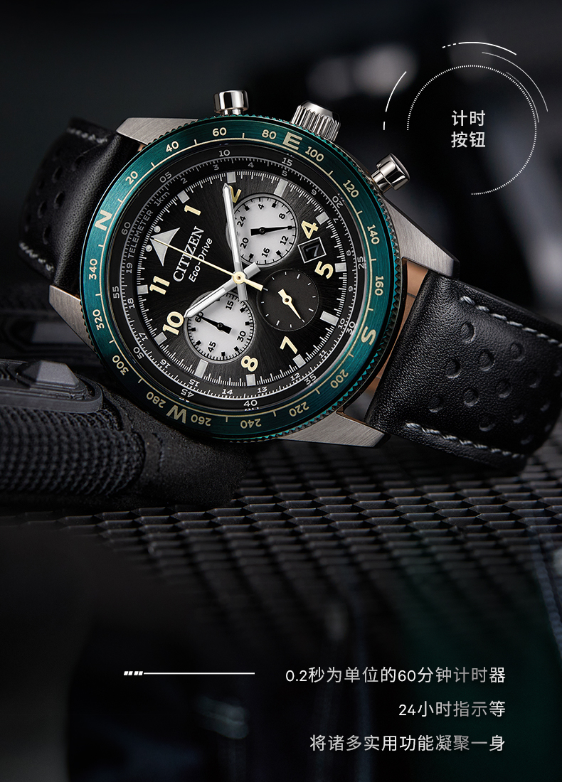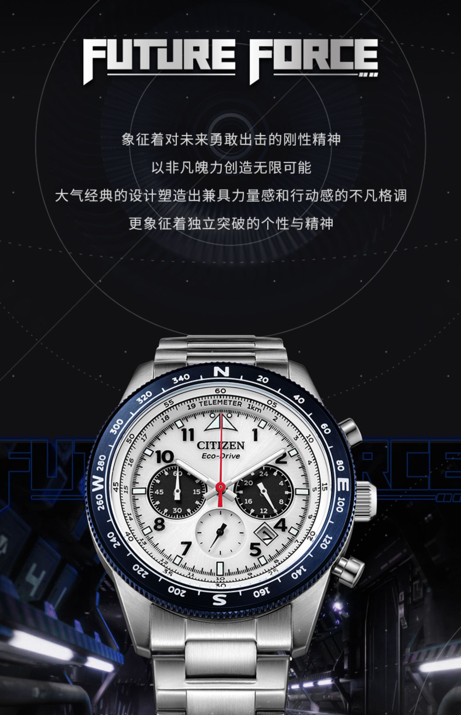 Citizen西铁城 FF系列 光动能手表潮流时尚黑盘皮带男表CA4558-16E(单位:块) 黑色