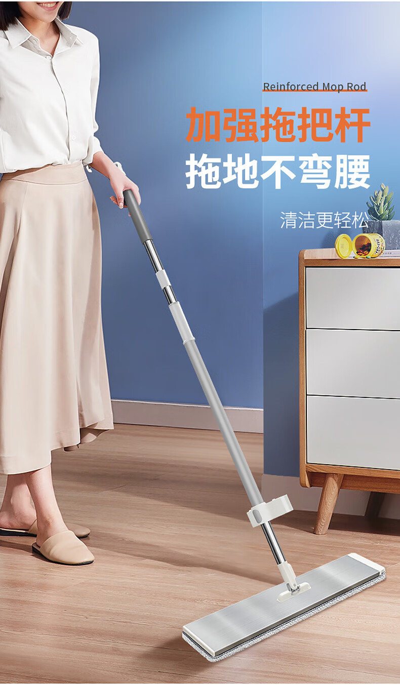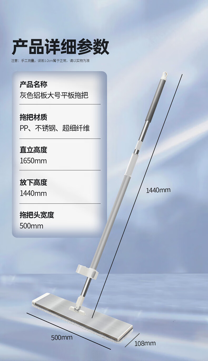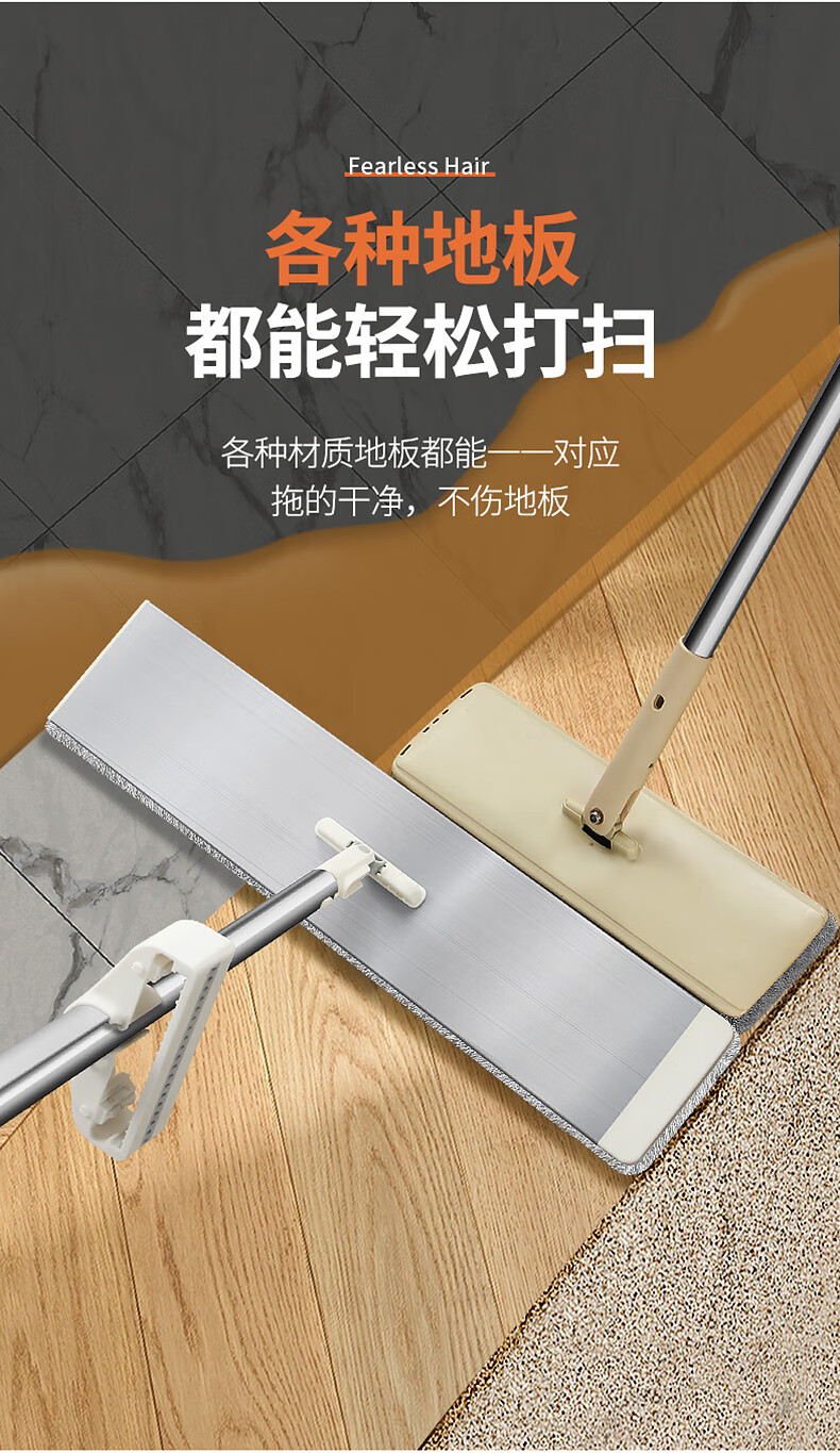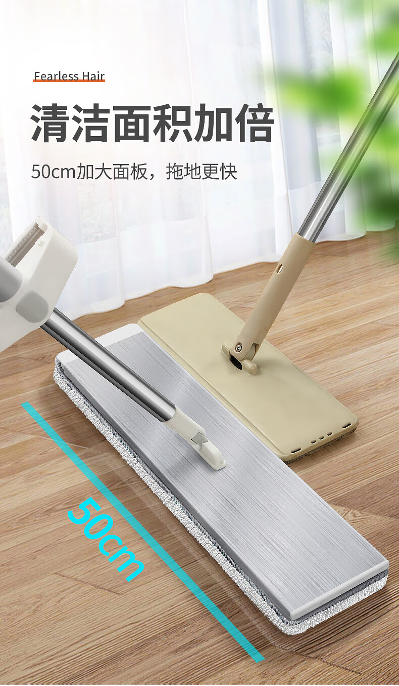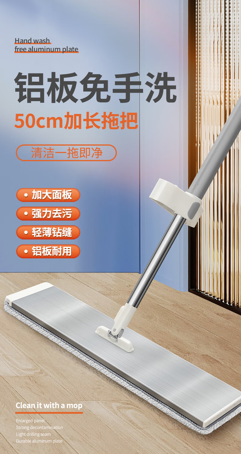 百家好世 铝板免手洗平拖--50cm灰色/2布装(带包棉护手) 50cm大号铝板平拖2布