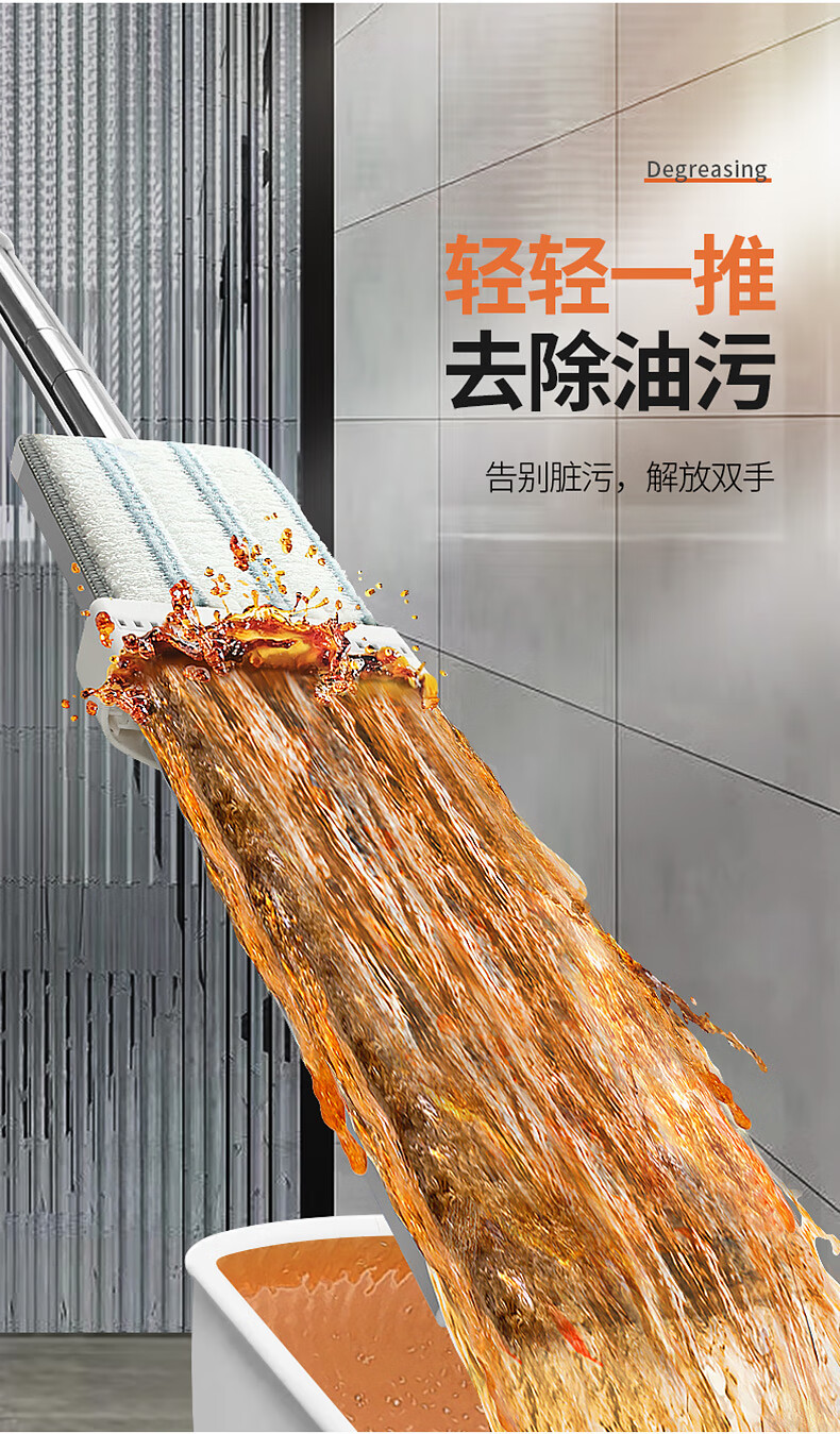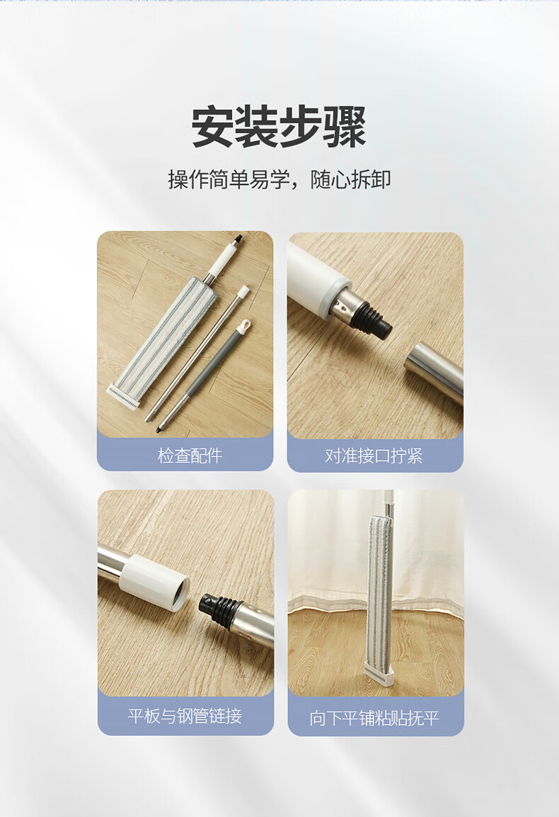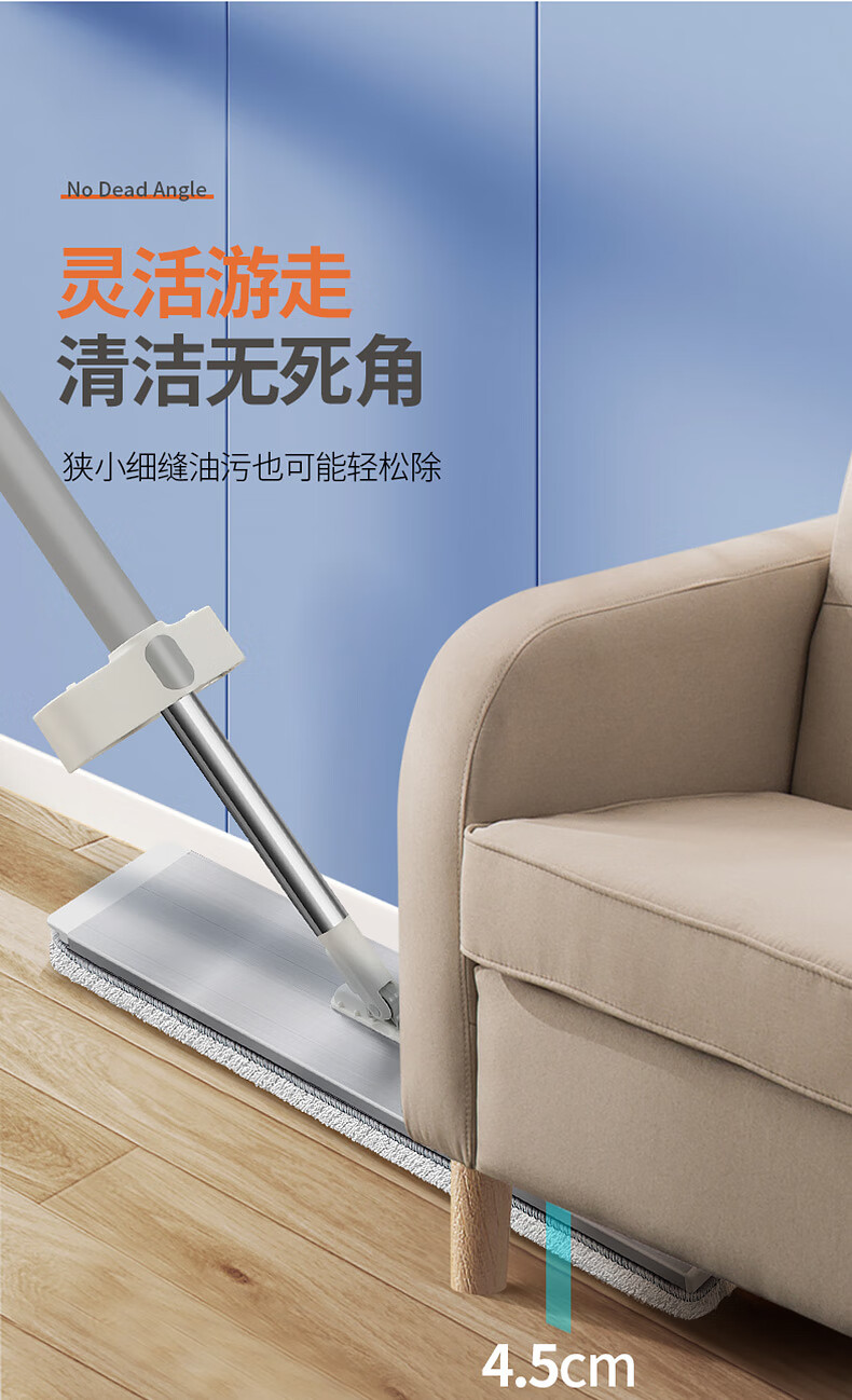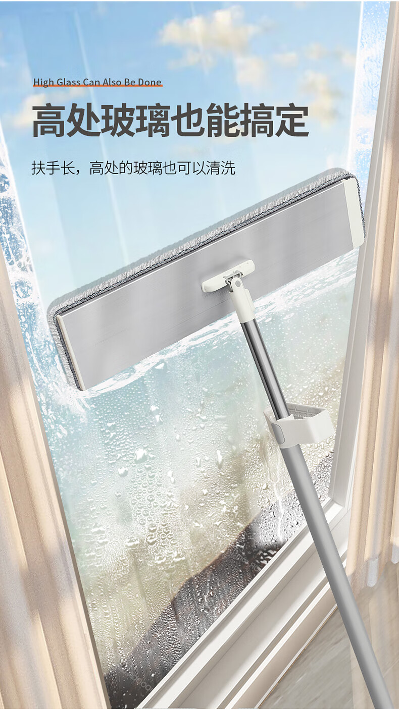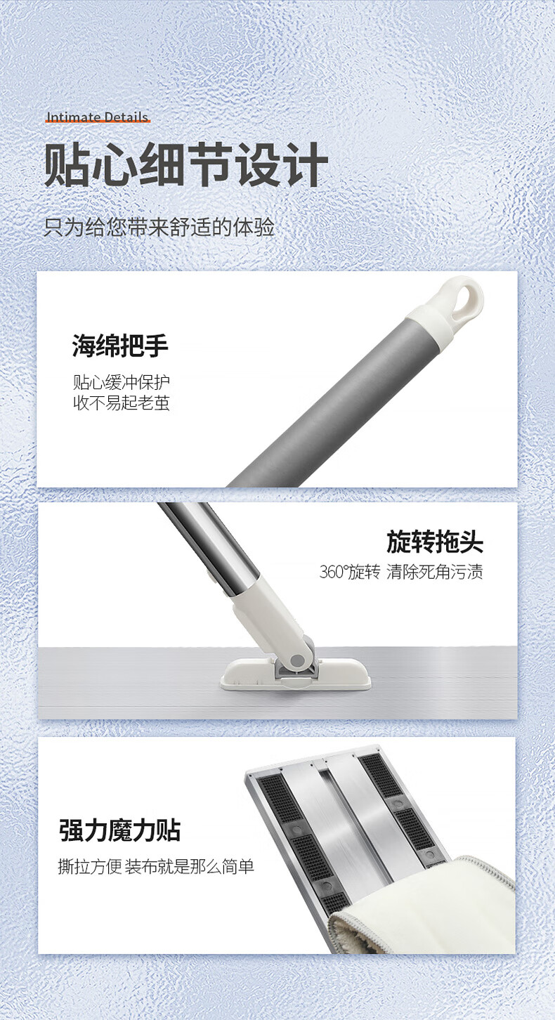 百家好世 铝板免手洗平拖--50cm灰色/2布装(带包棉护手) 50cm大号铝板平拖2布