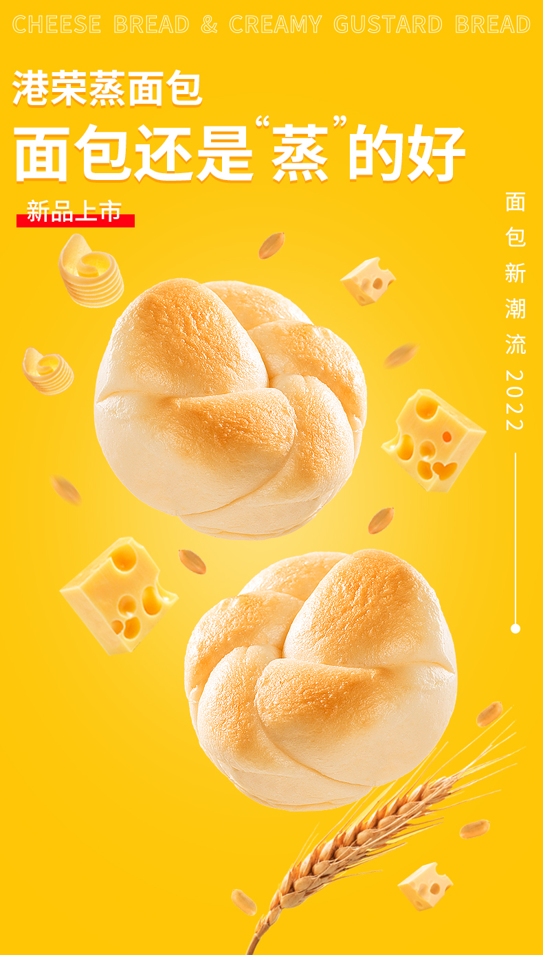 港荣蒸面包奶黄味460g(单位:箱) 黄色