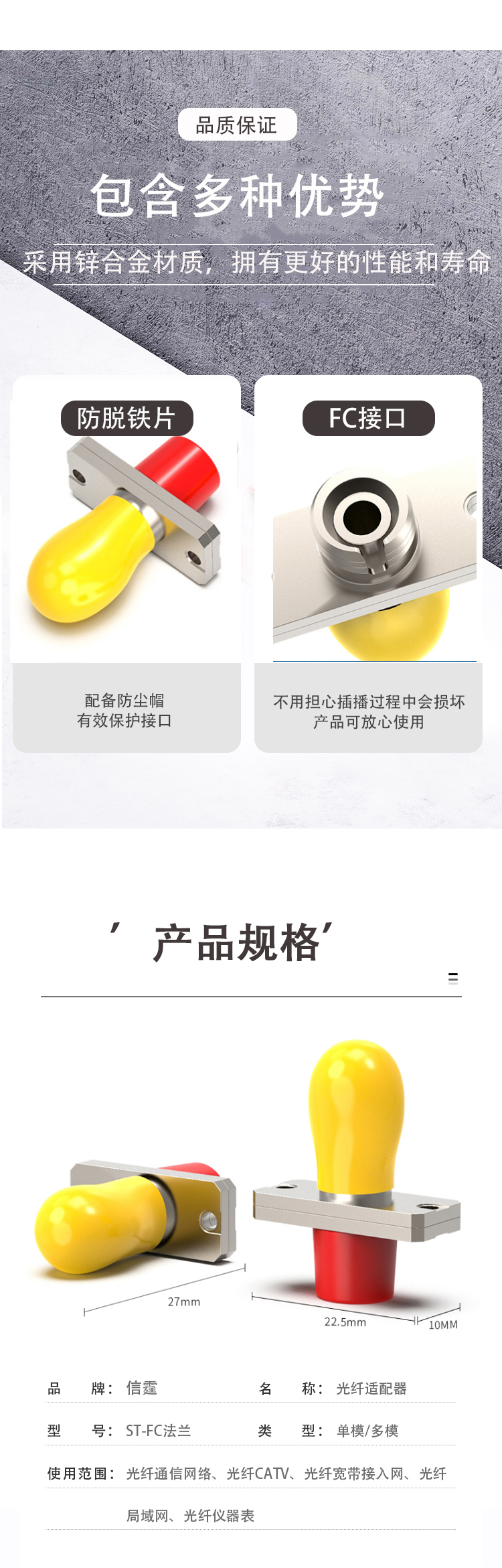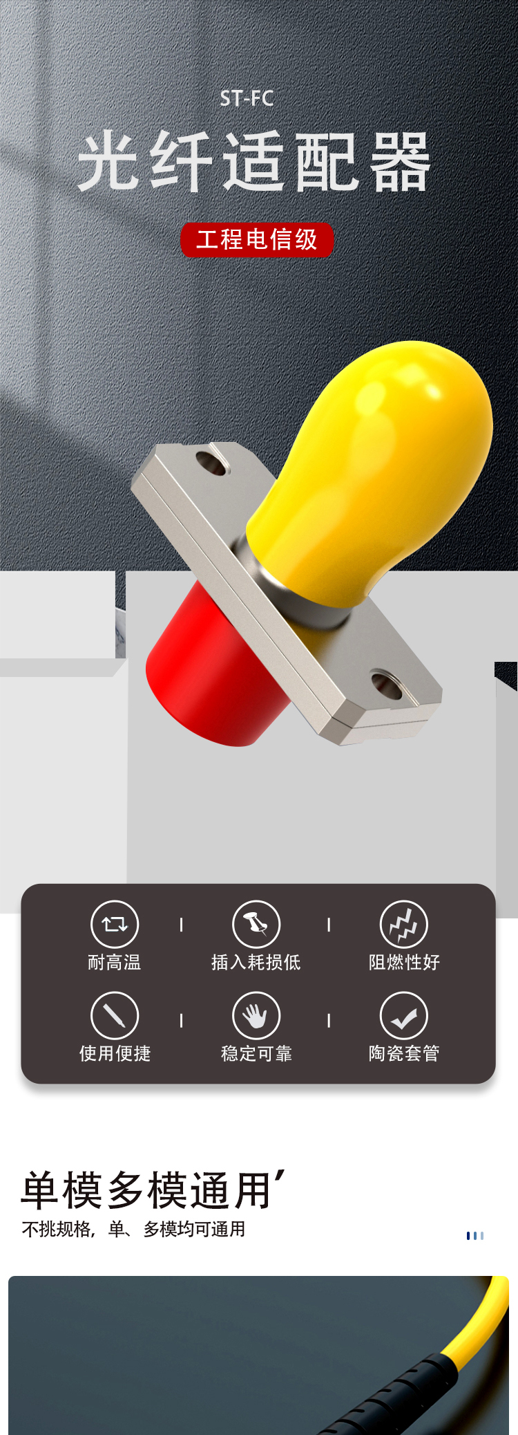 信霆光纤耦合器ST-FC 红黄 电信级 光纤连接器 光纤适配器(100个/包) 红黄色