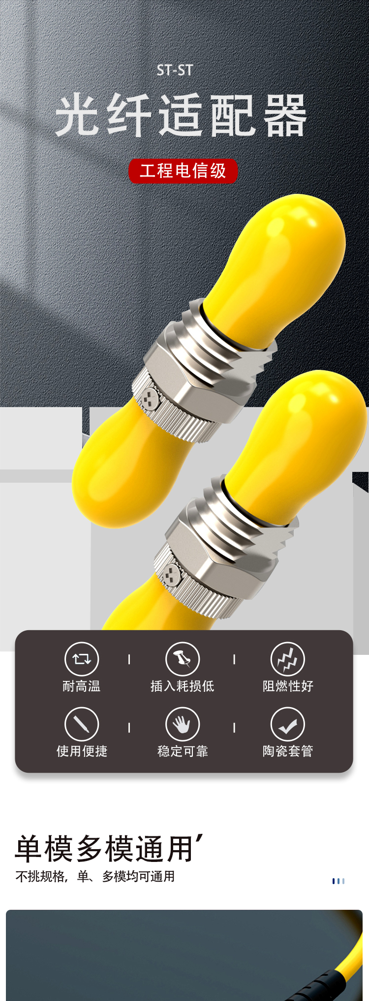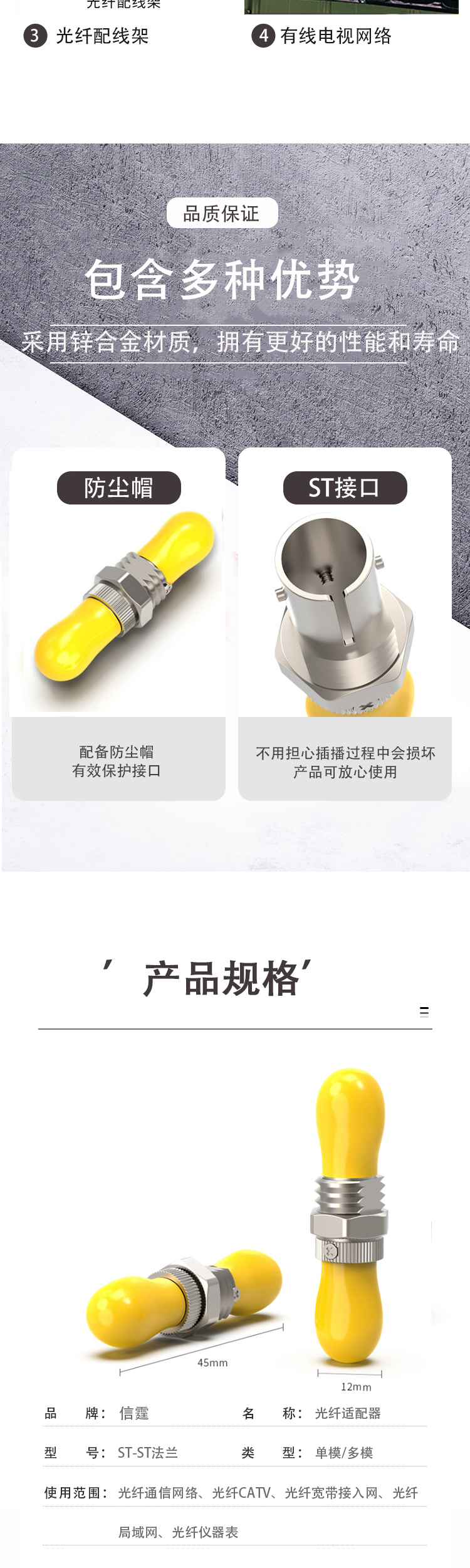 信霆光纤耦合器 ST-ST 黄色 电信级 光纤连接器 光纤适配器(100个/包) 黄色