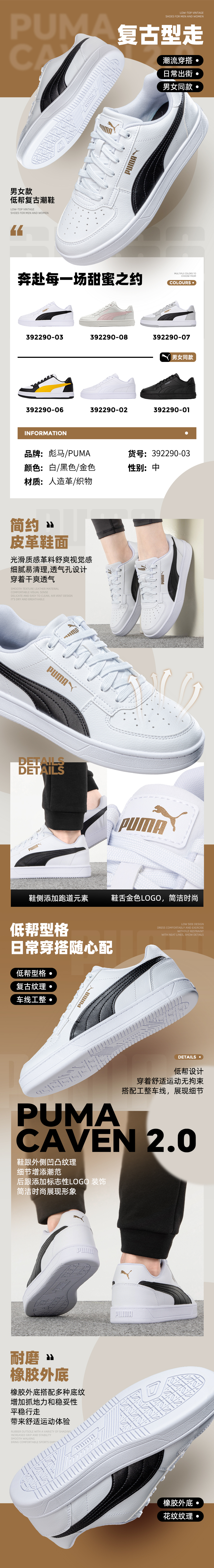 彪马(PUMA)男鞋女鞋 新款板鞋户外透气耐磨时尚潮流舒适运动休闲鞋 392290-03 白色 40