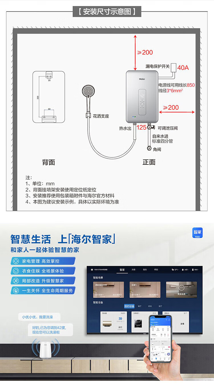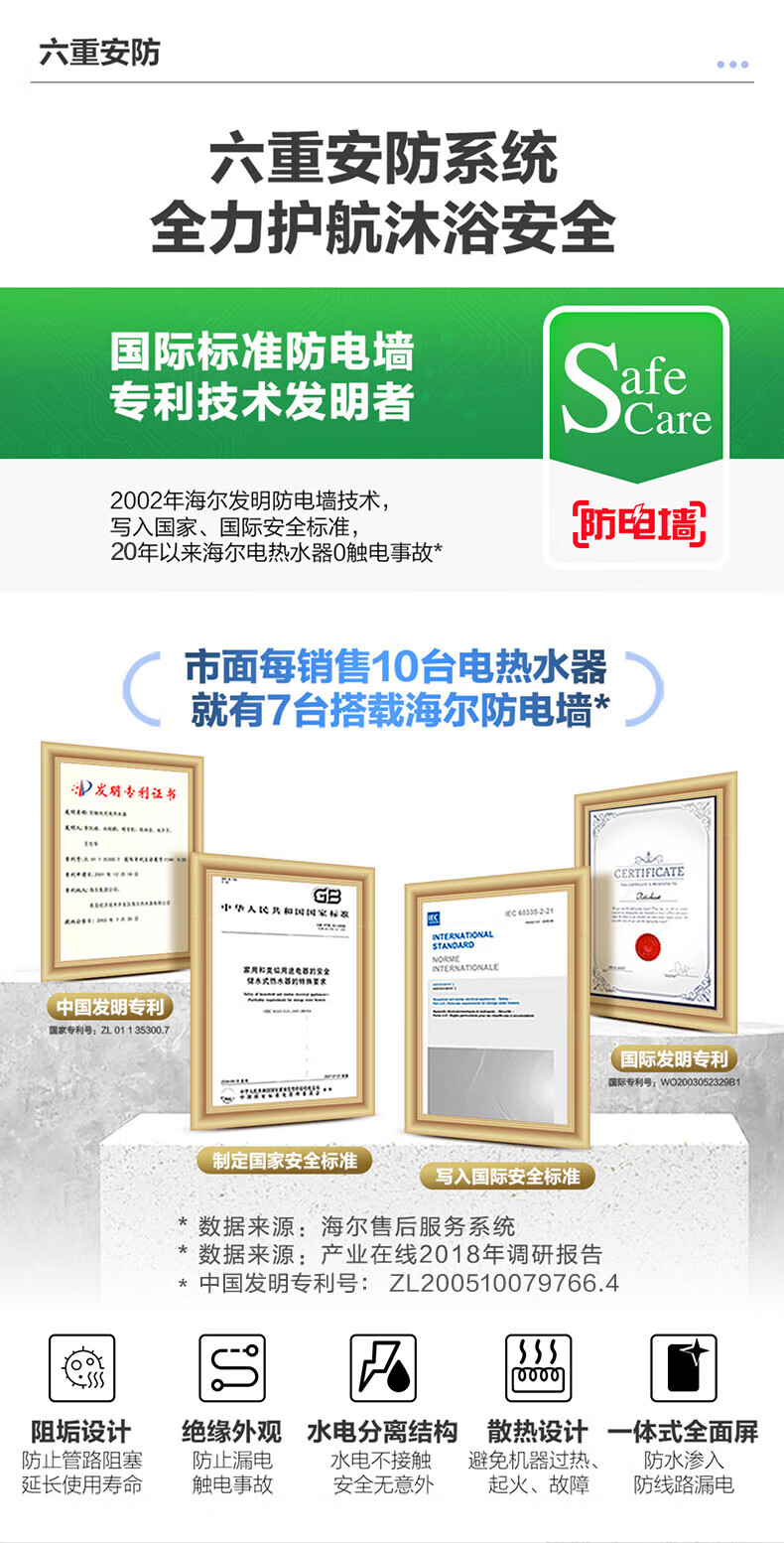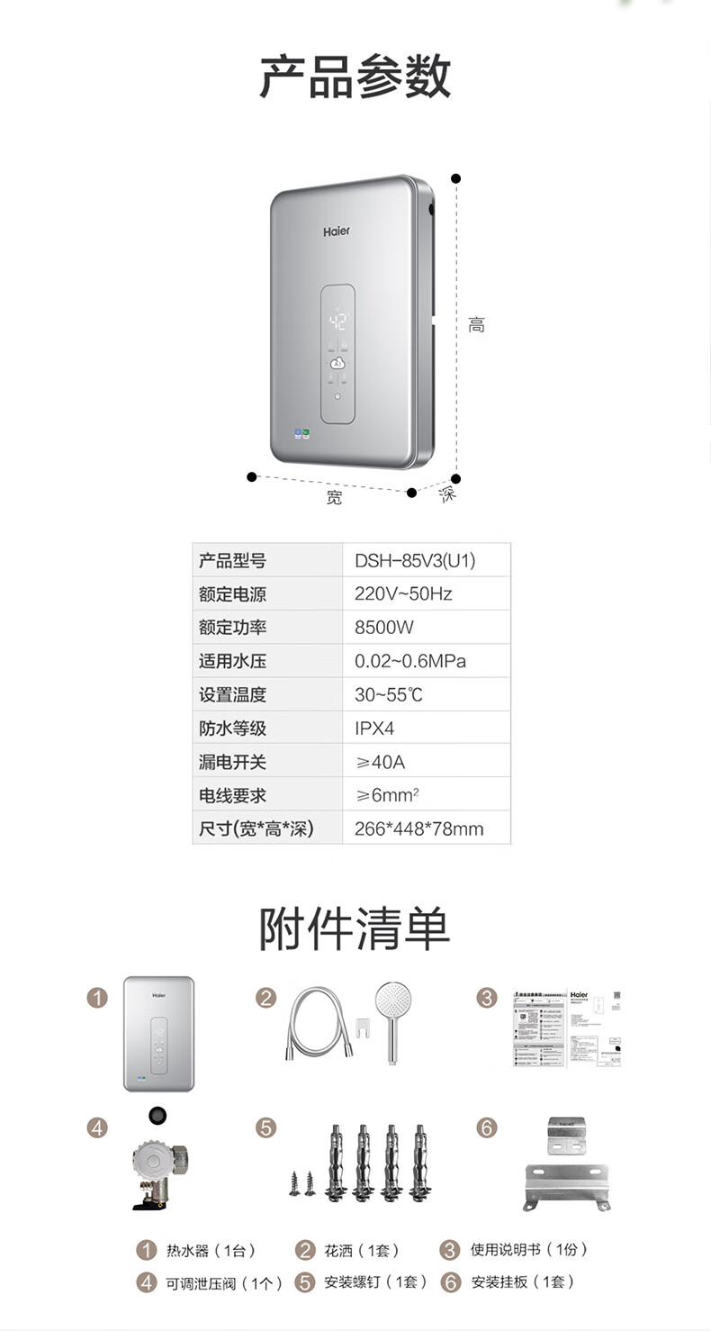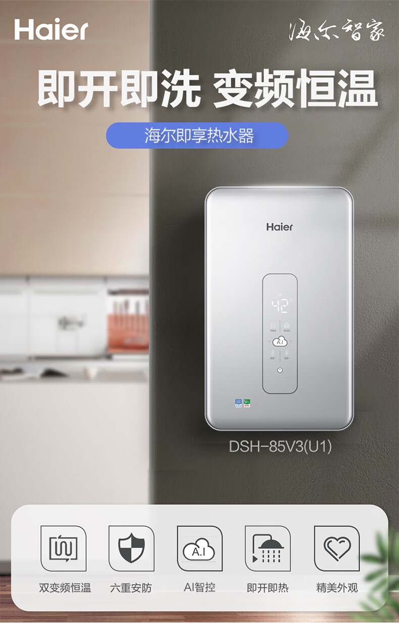 海尔(Haier)电热水器 DSH-85V3(U1) 电双变频恒温AI智能 单位:台 月光银