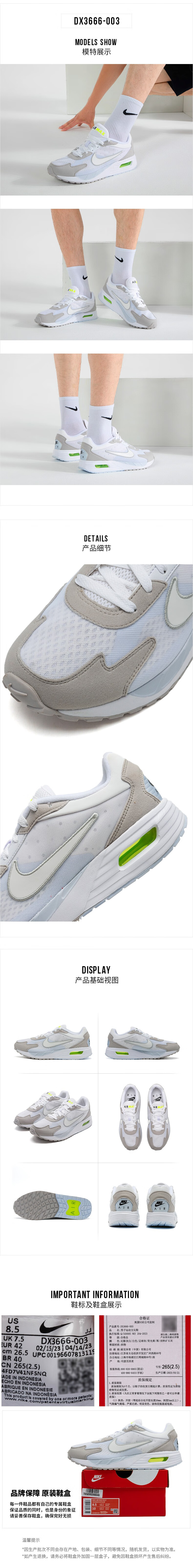 耐克(NIKE) 男鞋 透气运动鞋 新款AIR MAX气垫耐磨休闲鞋跑步鞋DX3666-003 黑/白/荧光黄/足球灰/幻影灰白/浅铁 40.5
