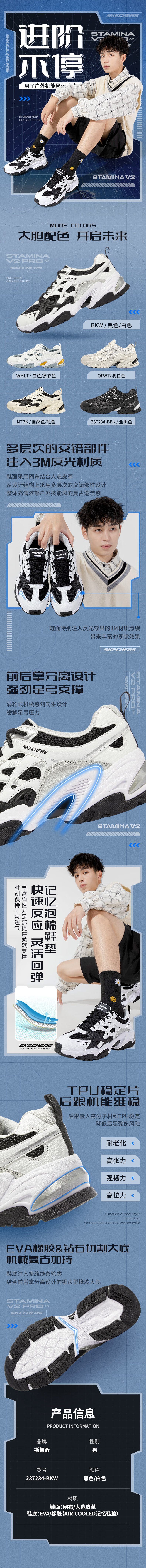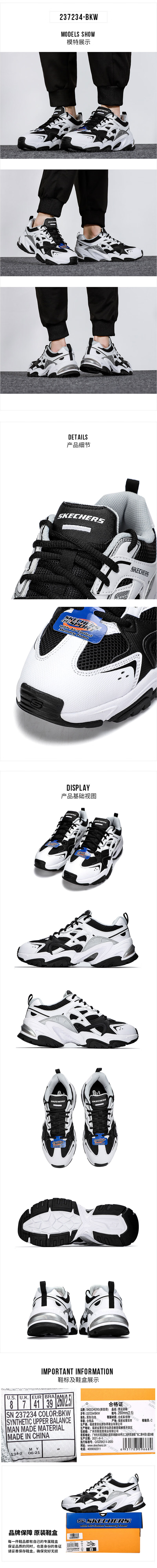 斯凯奇(Skechers)老爹鞋男鞋 新款透气潮流百搭休闲运动鞋网面透气增高鞋子 237234-BK 43