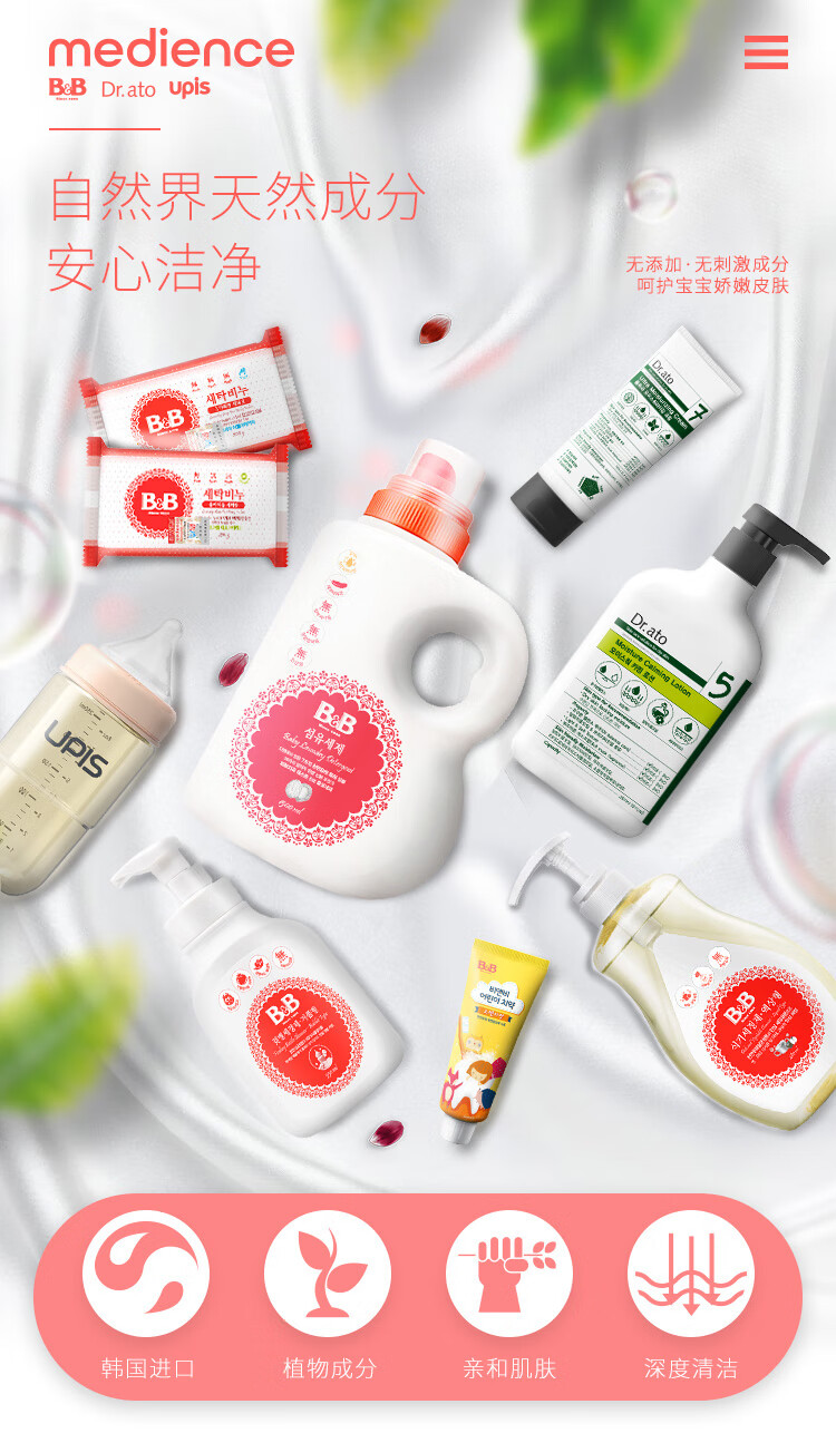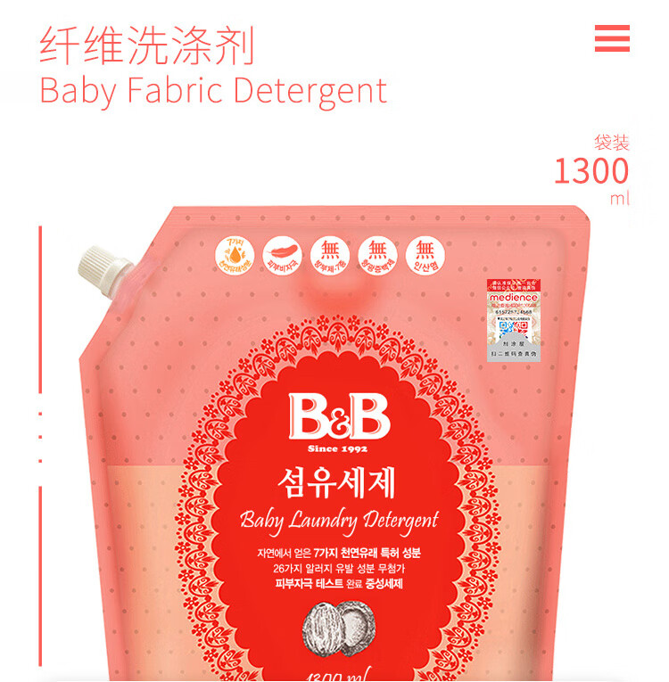 保宁B&BNew 纤维洗涤剂 (香草香-盖子袋装)NB04-07(3袋)1300ml(单位:袋) 粉色