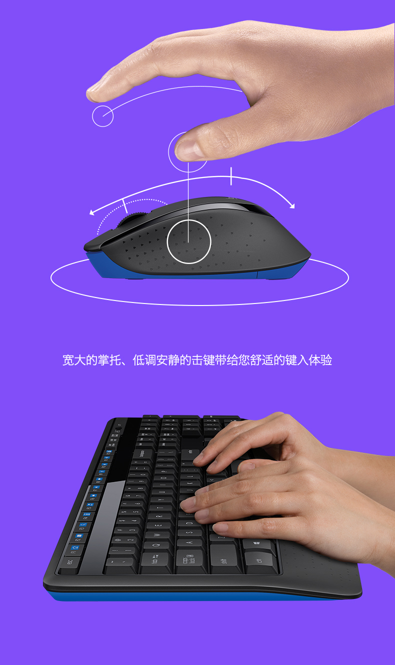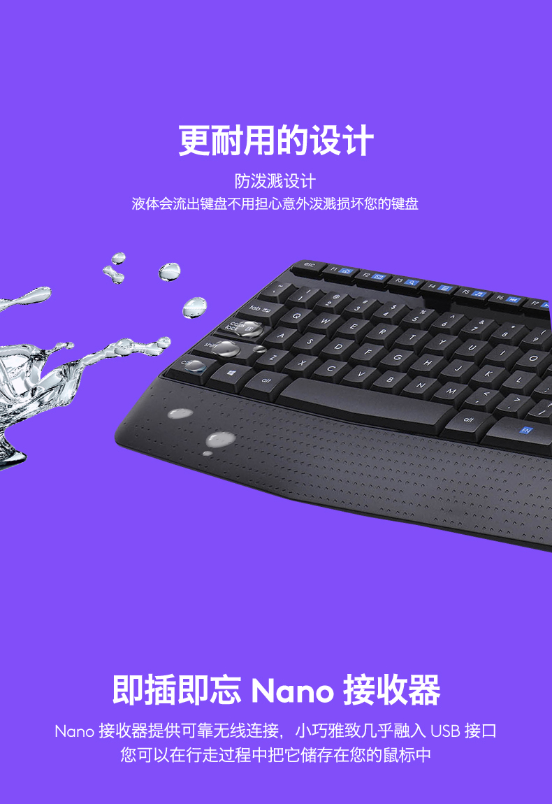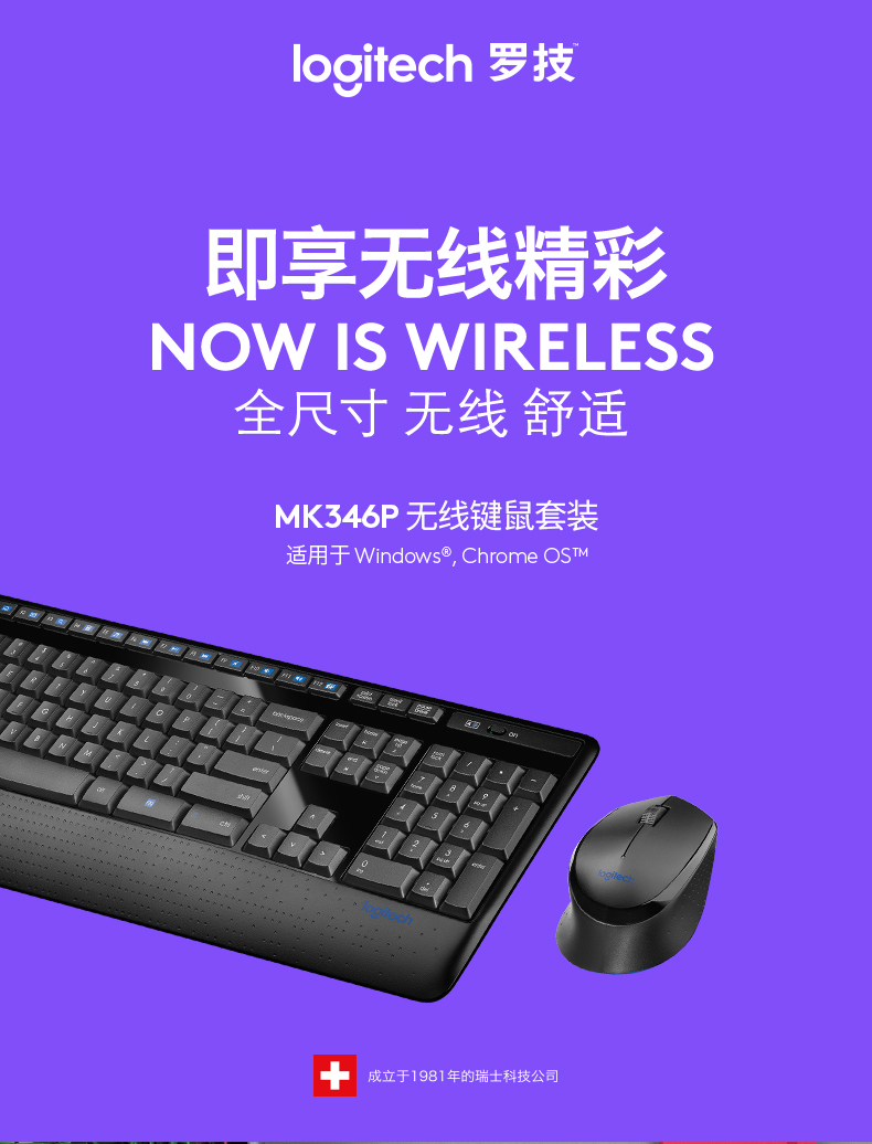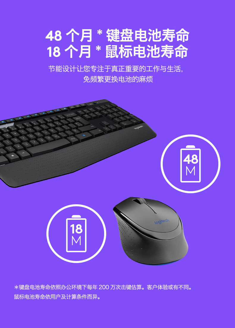 罗技无线键鼠套装MK346P防泼溅键盘鼠标 时尚高效舒适办公黑色1只/盒 曜石黑