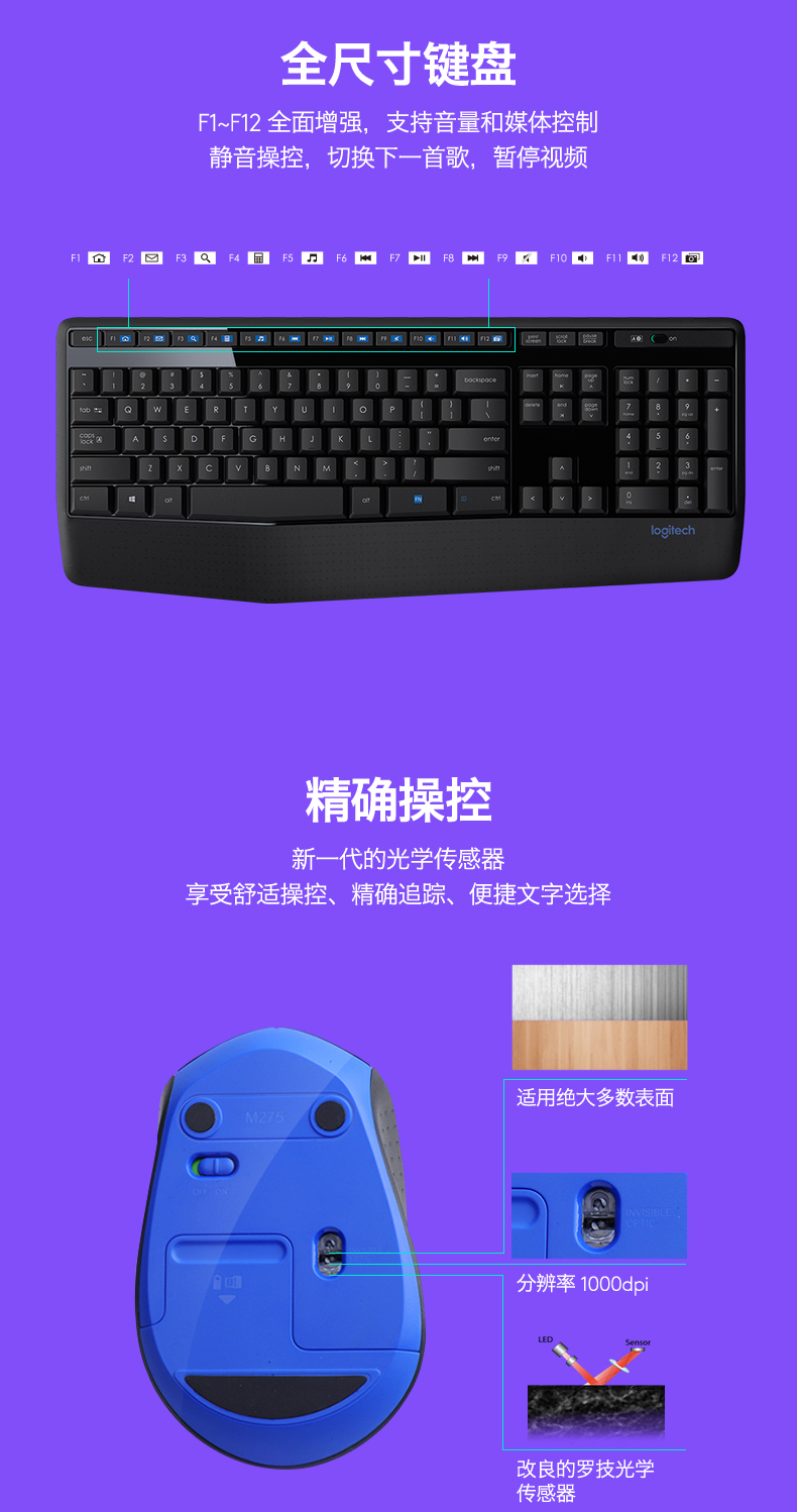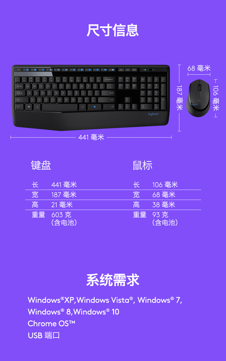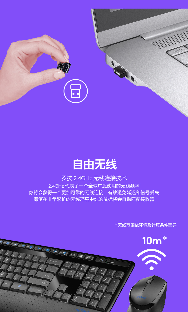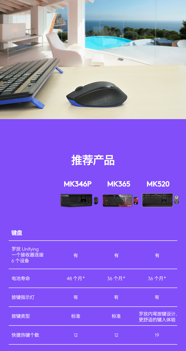 罗技无线键鼠套装MK346P防泼溅键盘鼠标 时尚高效舒适办公黑色1只/盒 曜石黑